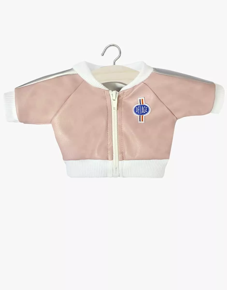 Collection Minikane X Delage – Blouson Bombers Benoit en simili cuir rose et silver pour poupées Gordis 34 & 37cm. Design, développement & confection made in France. Design, development & tailoring made in France.