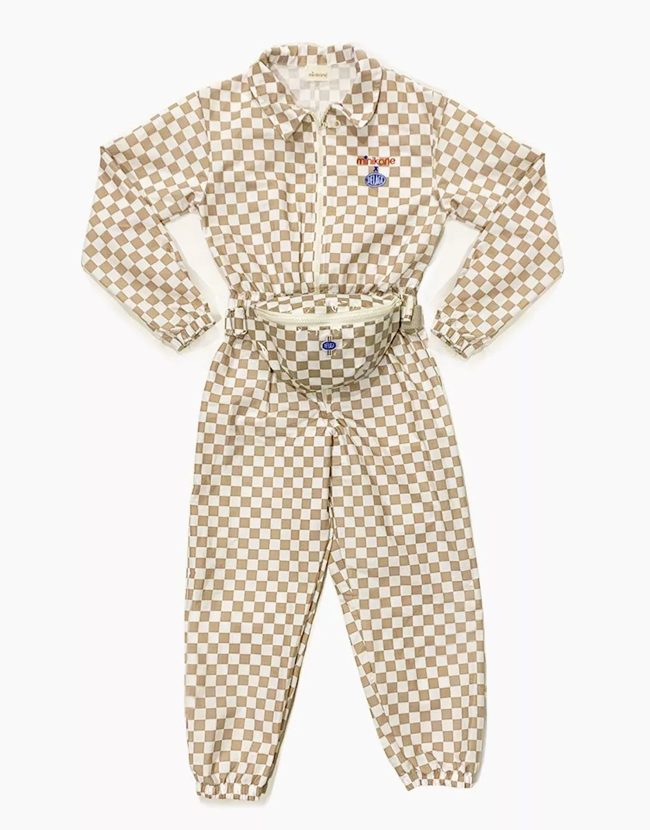 Minikane X Delage – Sac banane Enfant damier beige et blanc