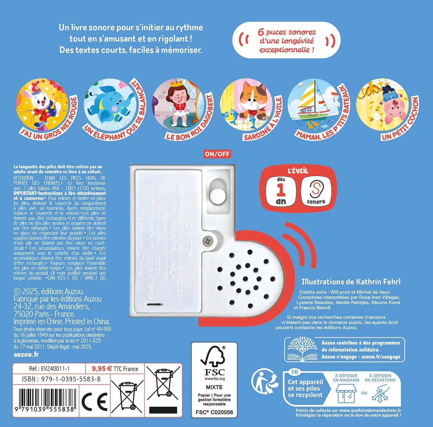 Enfin, ce livre sonore est spécialement conçu pour les tout-petits. Il encourage l’éveil musical, l’apprentissage du rythme et le plaisir de chanter, seul ou avec un adulte.