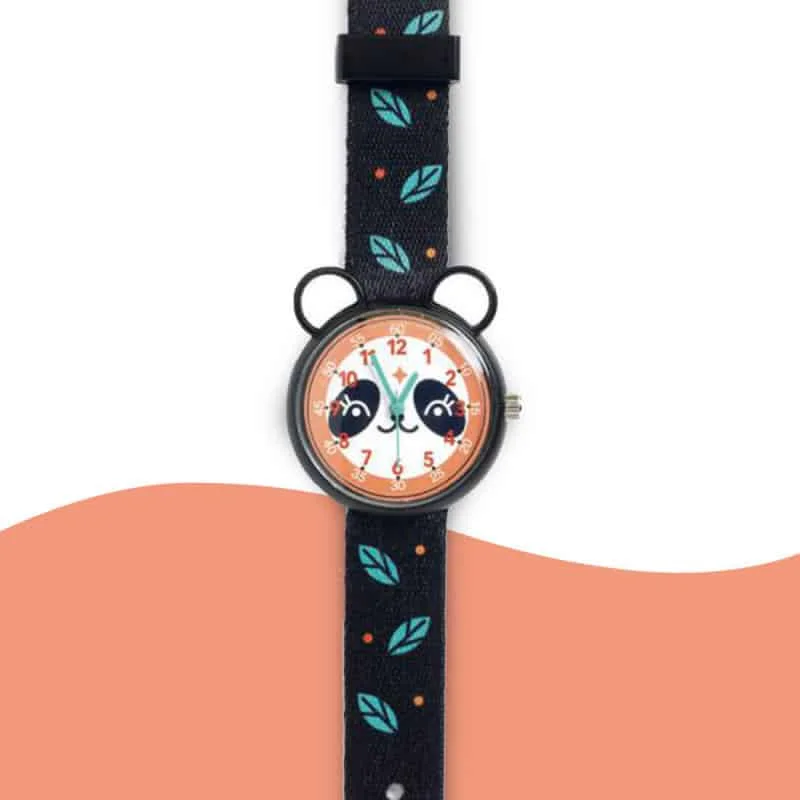 Offrez à votre enfant une montre aussi pratique que charmante avec cette montre Panda signée Djeco. Avec son bracelet noir parsemé de feuilles d’eucalyptus, elle invite à la douceur et à la découverte tout en accompagnant les petits dans l’apprentissage de l’heure.