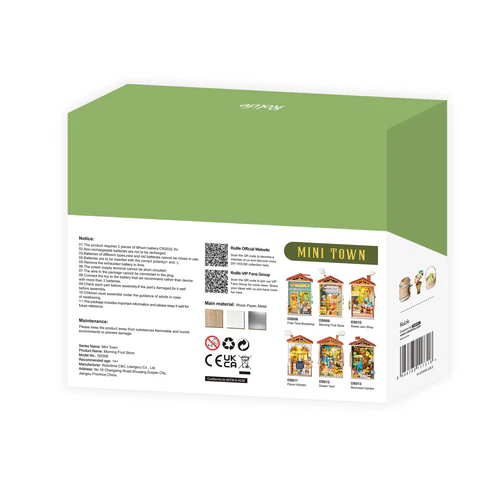Le Morning Fruit Store, ROBOTIME reflète chaque détail d’un marchand traditionnel. Vous pouvez presque sentir l’odeur des fruits frais et des beaux légumes exposés devant vous : carottes, pommes vertes fraîches et baies rouges. En dehors de cela, vous pouvez également vous rendre dans ce magasin de fruits pour faire de petites courses comme du café ainsi que des sucettes et des olives du baril. Vous prenez un panier en osier sur le crochet, vous le remplissez de choses que vous aimez et vous allez à l’intérieur pour faire vos courses.