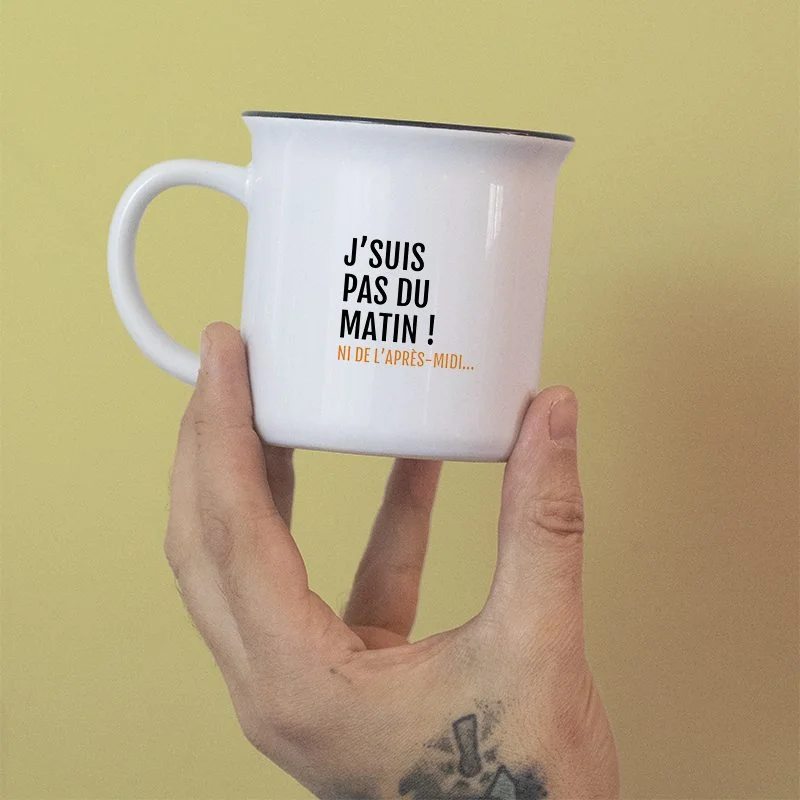 Les mugs « Pas content » de Bibiche fait son cirque sont là pour ceux qui ne cachent pas leur humeur. Avec des messages audacieux comme « 3615 faites pas chier« , « allez vous faire foutre« , « fucking morning« , « fermez vos gueules« , « je suis pas du matin », « j’ai la tête dans le cul » ou encore « je vous emmerde« , ces mugs ont un style unique pour ceux qui aiment exprimer leur colère ou leur agacement avec une pointe d’humour.