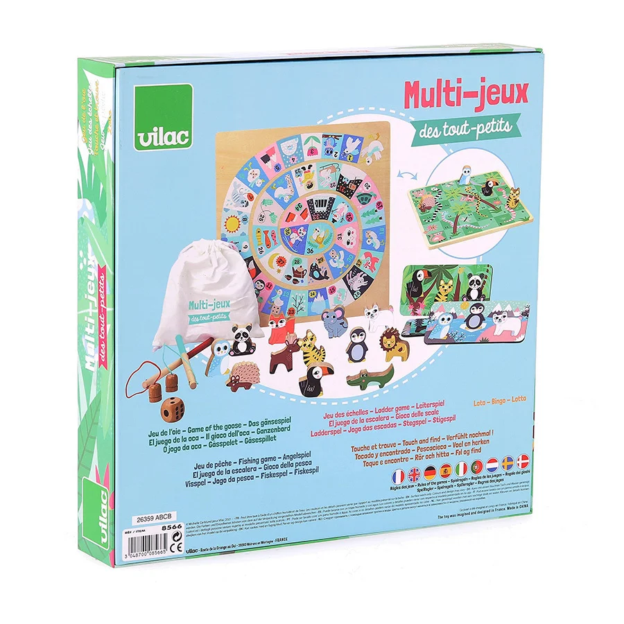 Le Multi-Jeux des tout-petits, VILAC propose un ensemble d’activités spécialement conçu pour les jeunes enfants. Ce coffret en bois réunit cinq jeux différents qui encouragent la motricité fine et la créativité dès l’âge de 2 ans. Les jeux, adaptés aux tout-petits, permettent d’apprendre tout en s’amusant.
