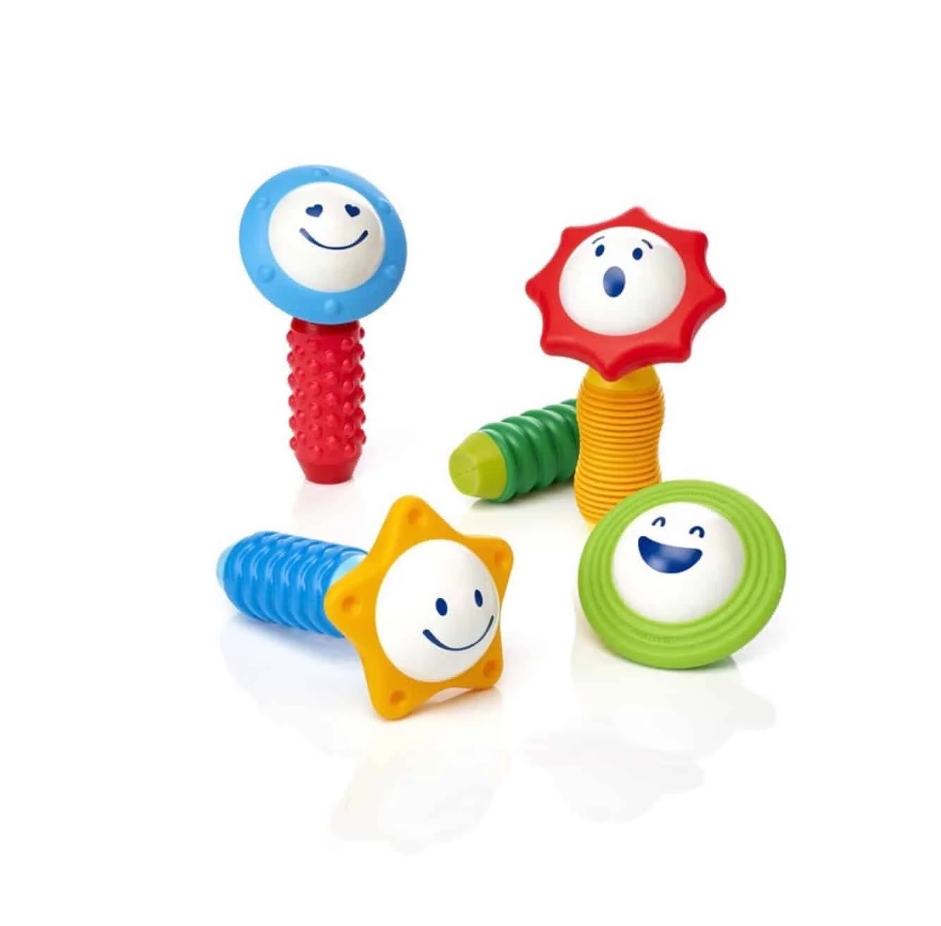 Le set comprend 4 boules et barres aimantées, chacune avec des effets sonores ou des textures différentes. En manipulant les pièces, les enfants découvrent des sensations variées : des clics, des grelots, des roulements… Chaque élément devient une source de découverte, éveillant curiosité, coordination œil-main et plaisir de construire.