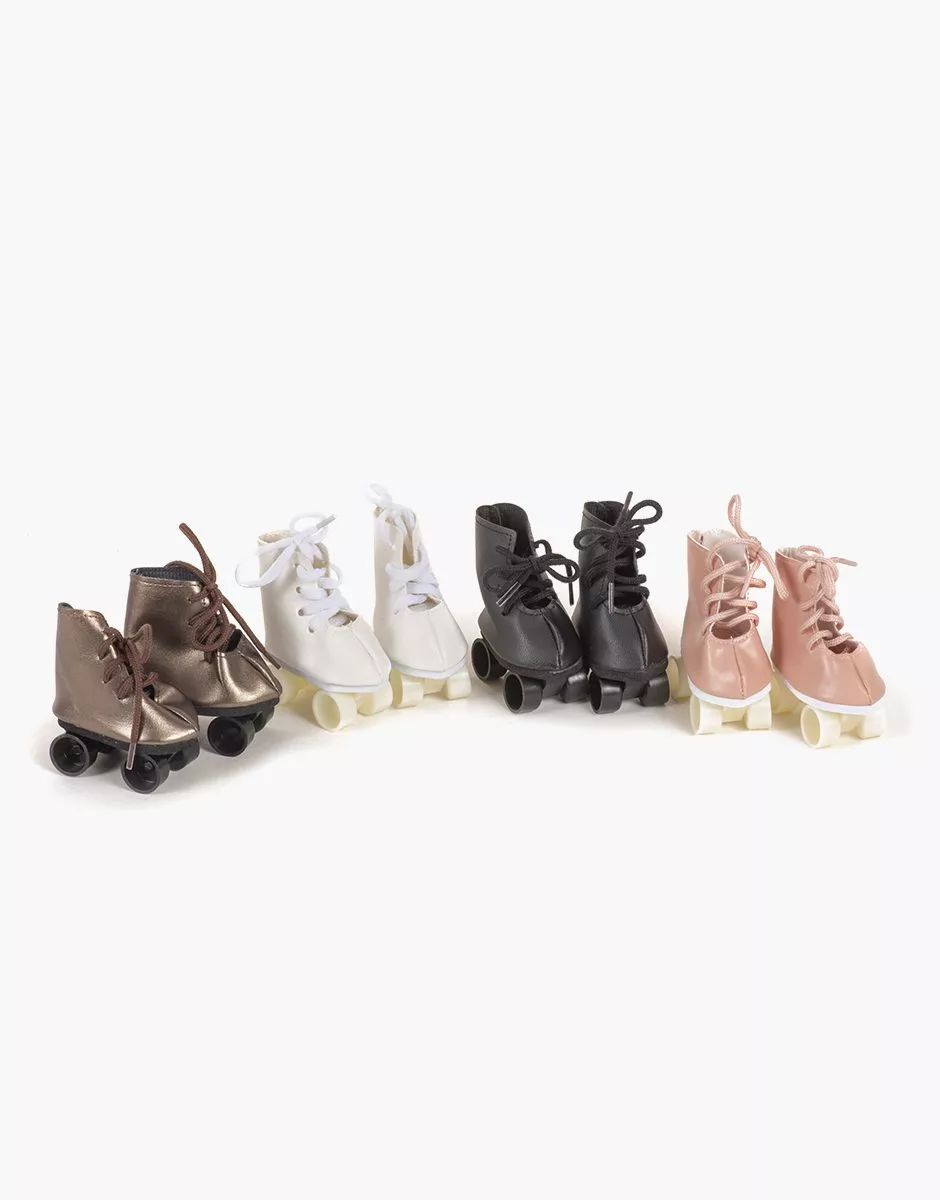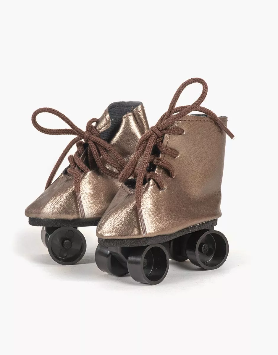 Paire de patins à roulettes en simili cuir pour poupées et poupons Minikane Gordis 34 & 37cm. Design, développement & confection MADE IN FRANCE. Design, development & tailoring made in France.