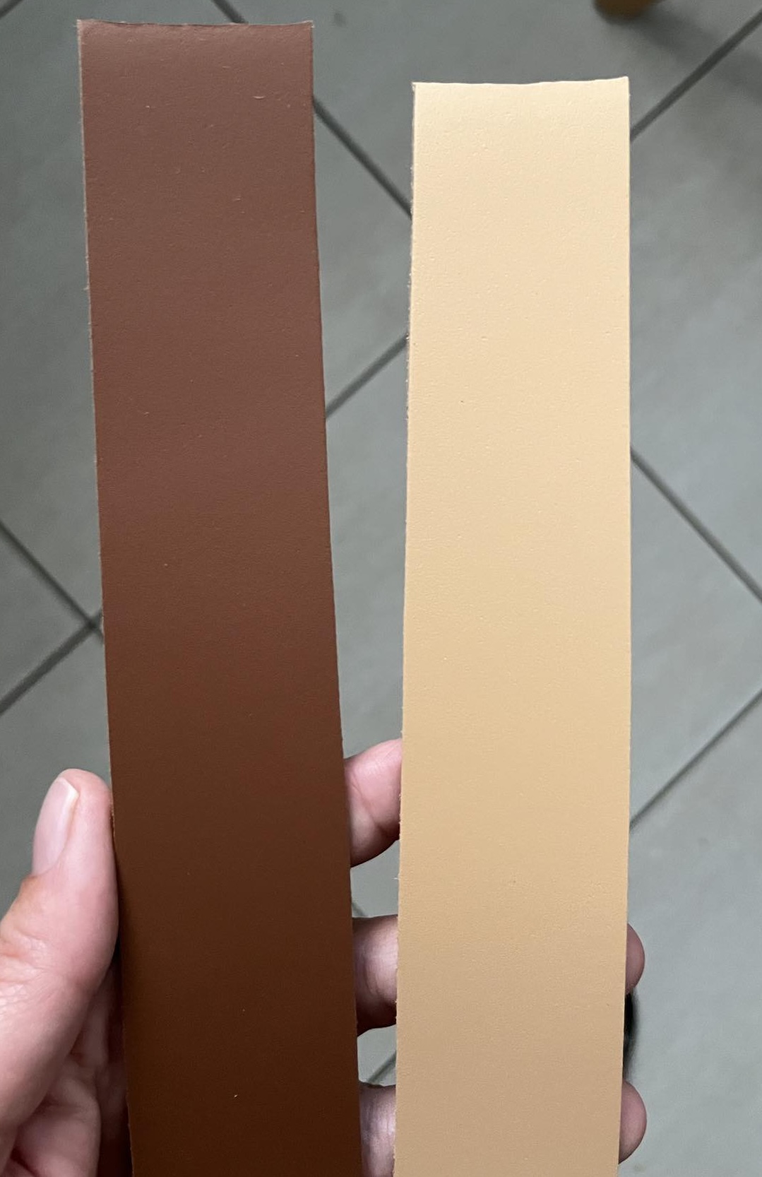 Modèle Théo (grand) en noisette, pompons beige noisette et moutarde