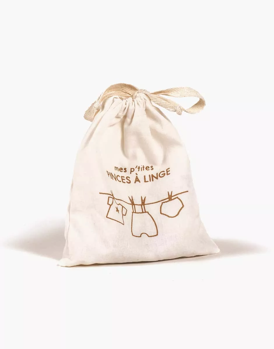 Panier pochon « Set lingerie » en coton et ses 10 pinces à linge