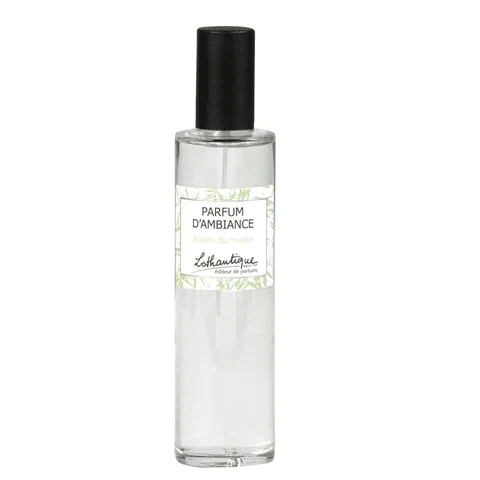 Parfum d’Ambiance Rosée du Matin, Lothantique. Découvrez cette fragrance douce et fraîche qui parfumera délicatement toutes les pièces de votre maison. Quelques vaporisations dans l’air permettront une diffusion rapide et efficace du parfum. Ce parfum a été spécialement élaboré pour Lothantique par nos parfumeurs à Grasse et est fabriqué en France.