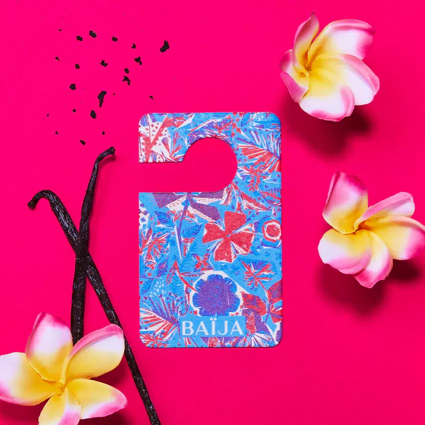 Ce désodorisant voiture diffuse ses notes solaires, fraîches et florales de Vanille et de Frangipanier pour un voyage paradisiaque vers l’île de Madagascar.