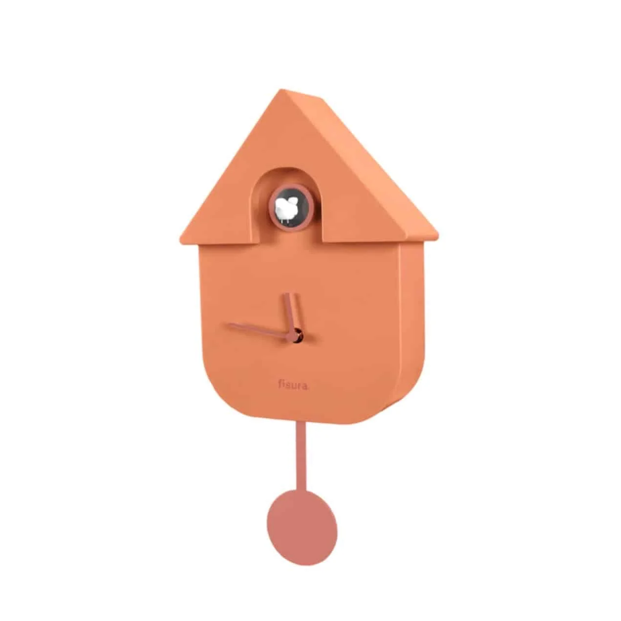 Pendule Murale Coucou Terracotta, Fisura. Un peu nostalgique du coucou de votre grand-mère quand vous étiez petits ? Fisura a sorti pour vous un joli coucou aux couleurs tendances pour égayer votre intérieur. Il chantera l’heure toute les heures sauf entre 22h00 et 8h00, quand même mieux que le coucou de mamie sur ce coup, hein ? Le balancier rythme aussi vos journée par son agréable mouvement. Vous pouvez régler trois niveaux de son pour les endroits plus ou moins bruyants de la maison.