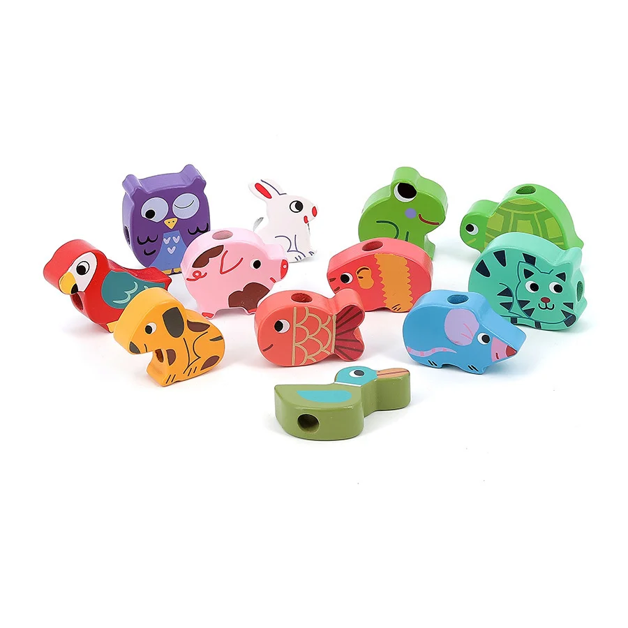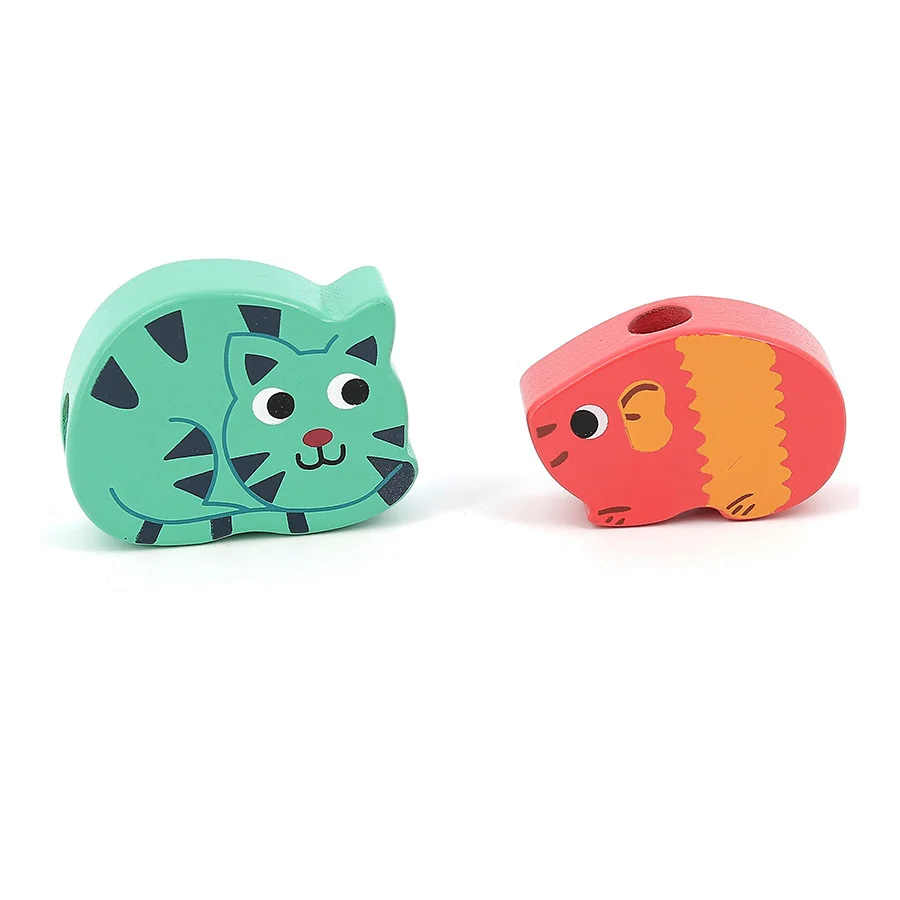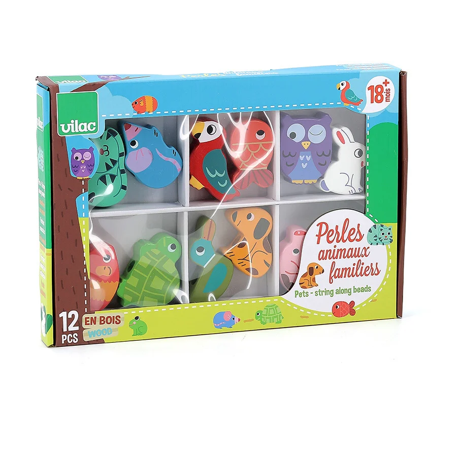 Chaque perle, représentant des animaux comme le chat, le chien, ou encore le lapin, est spécialement conçue pour être facilement manipulée par les petites mains. Avec les lacets fournis, les enfants peuvent créer de jolis colliers et bracelets ou simplement s’amuser à enfiler les perles pour s’initier aux concepts de couleurs, de formes et de séquences.