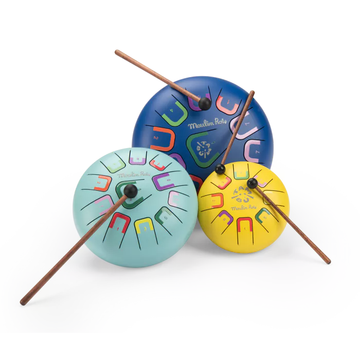 Petit tambour à languettes bleu clair, Moulin Roty