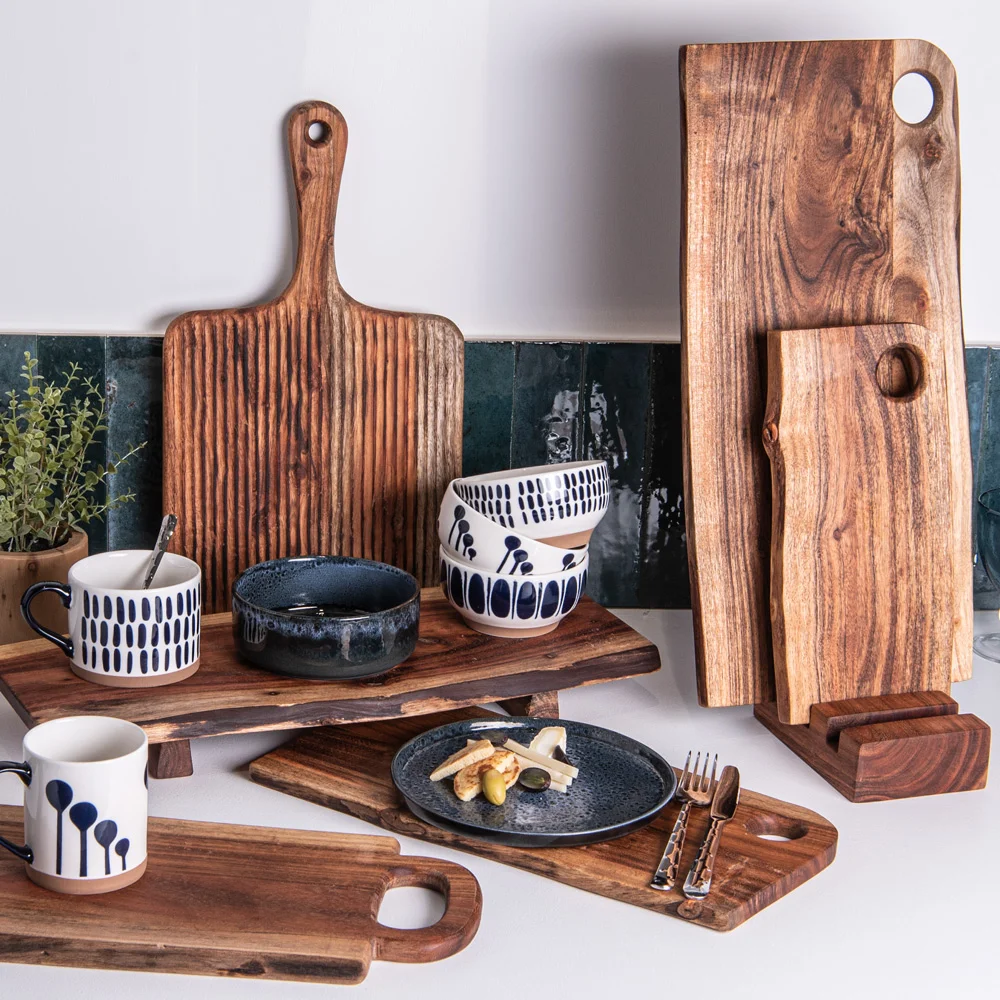 Planche à Découper en Bois d’Acacia avec Manche – 55 cm
