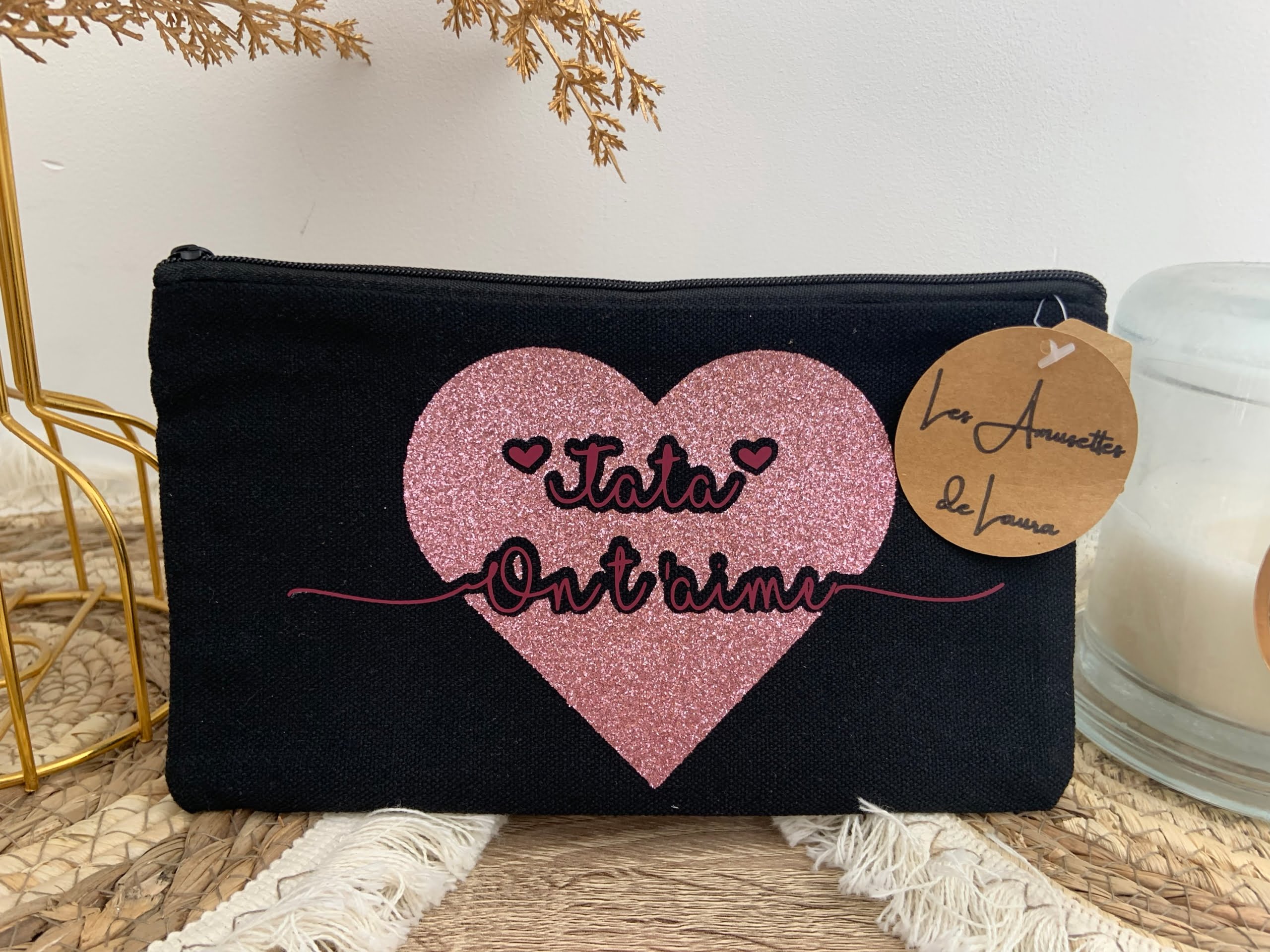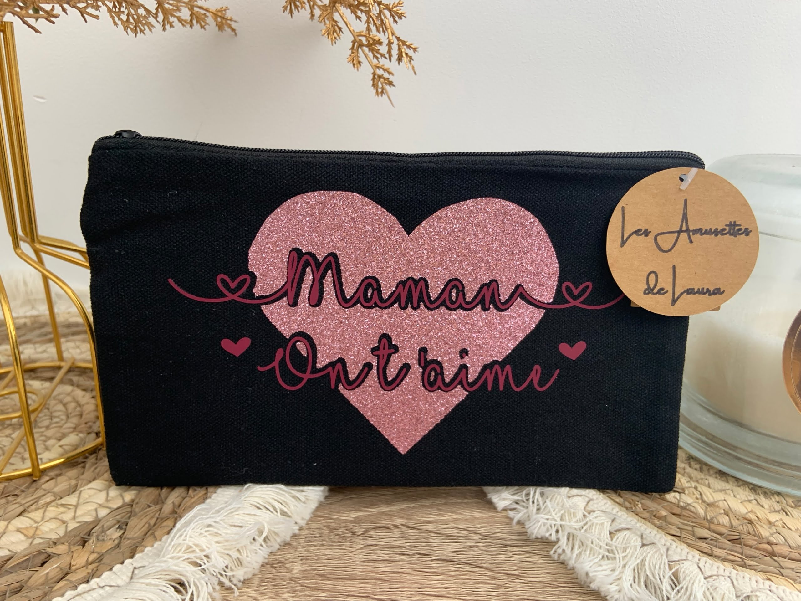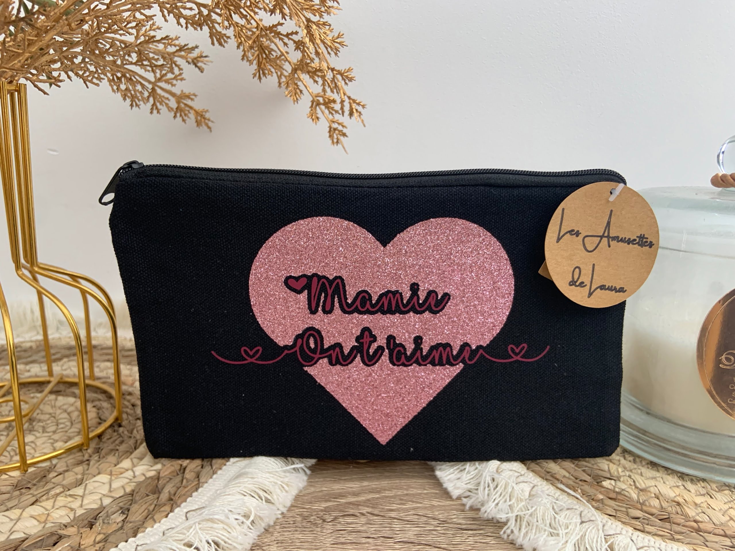 Pochette coeur pailletée rose Maman ou Mamie ou Tata 21x12cm