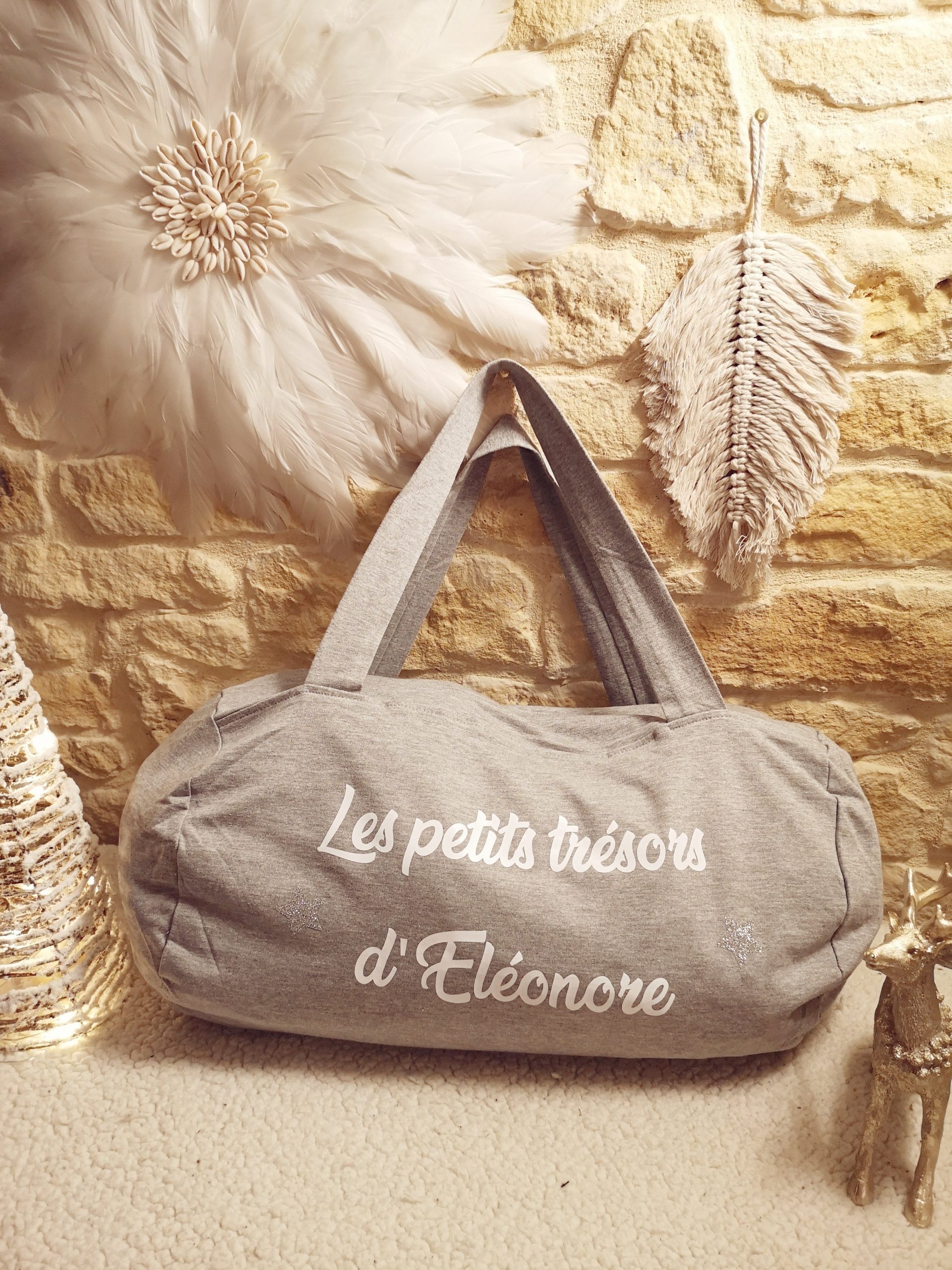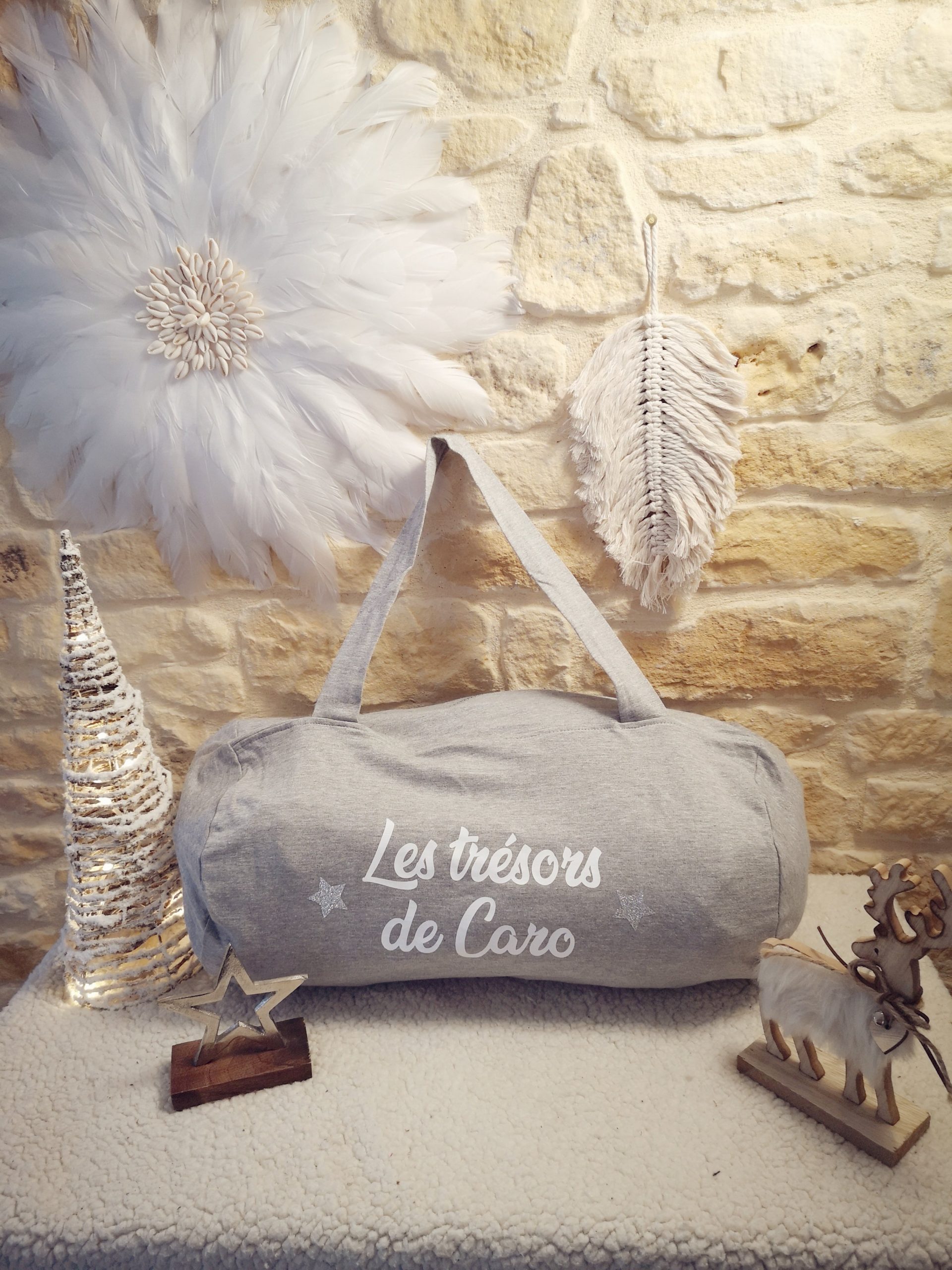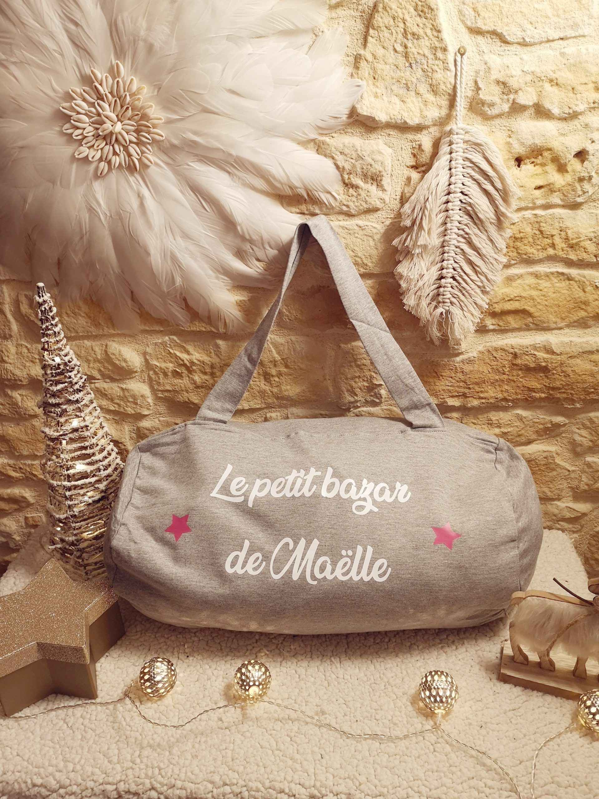 Sac polochon gris Pour y mettre les affaires de bébé ou de sport. En coton, extensible de forme polochon à porter à l’épaule. Dimensions 45X25cm Texte de 5 mots max avec 2 étoiles à choisir Couleur texte pour le sac polochon gris : Blanc, rose poudré Etiquette composition : 80% coton 20% polyester Entretien : – Laver en […]