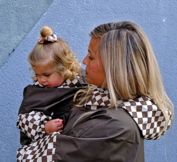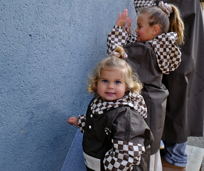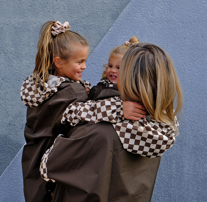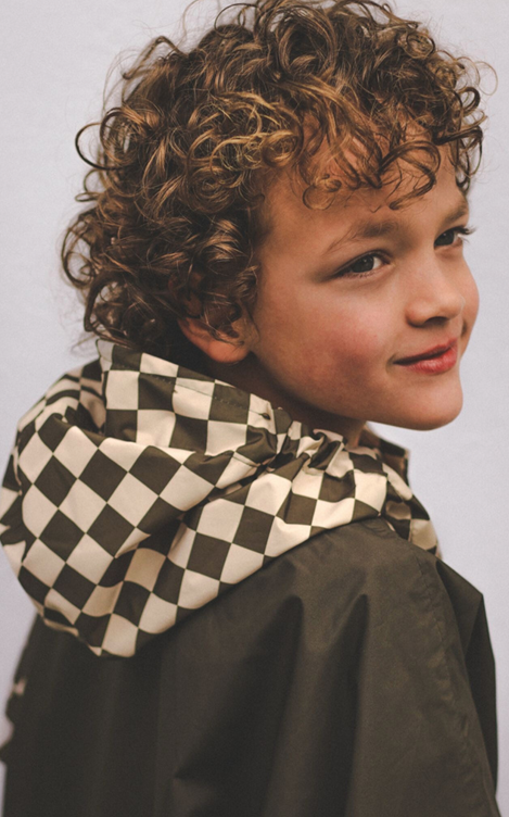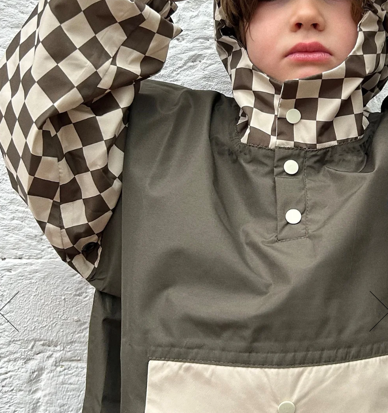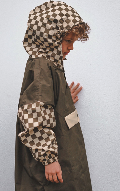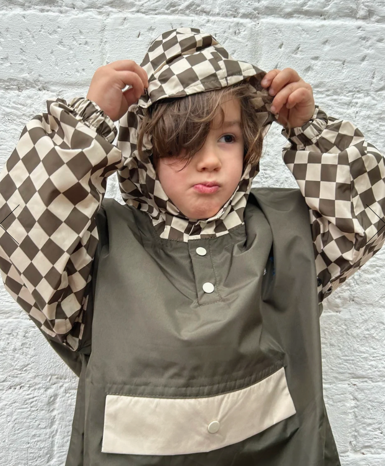 Poncho de pluie enfant damiers kaki – Poule Party