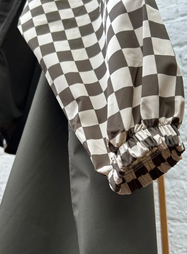 Le poncho de pluie enfant damiers kaki Poule Party est l’allié parfait pour affronter la pluie avec style et confort. Désigné à Bordeaux et fabriqué en circuit court dans un atelier européen situé au nord de la Turquie, il reflète le savoir-faire local et l’engagement écologique de la marque.