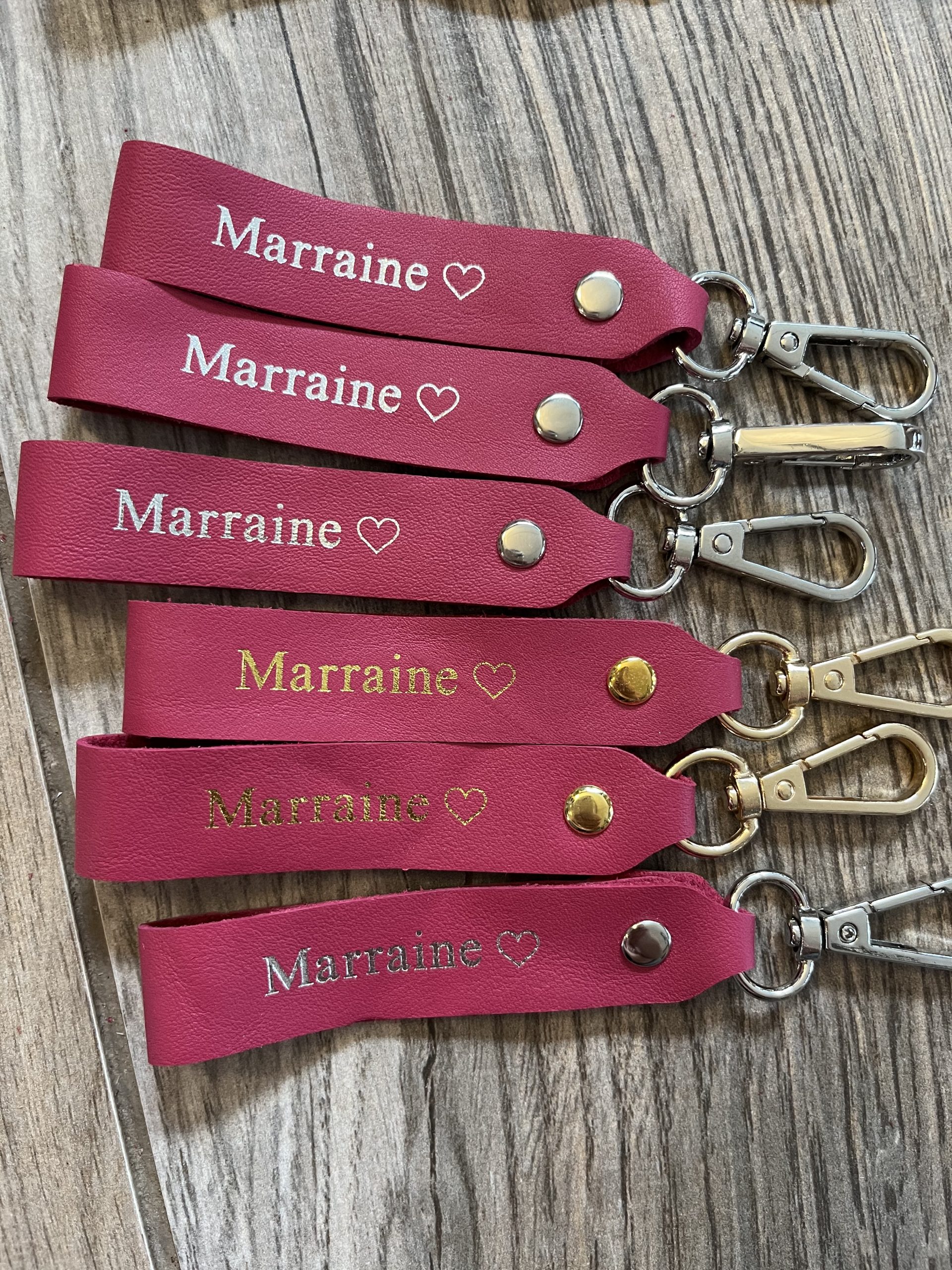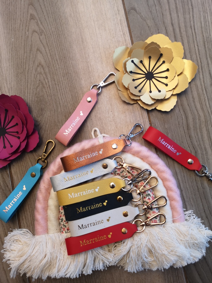 Porte clés en cuir Marraine