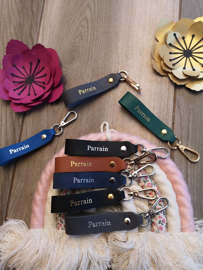 Porte clés en cuir Parrain Porte clef réalisé dans notre atelier lotois grâce à des chutes de cuir de maroquinerie de luxe d’Occitanie. Gravé à la main. Dimensions avec mousqueton : 14cm de long Etiquette composition : Cuir de maroquinerie de luxe, gravure et mousqueton en métal Entretien : – Le porte clef ne se lave pas, vous […]