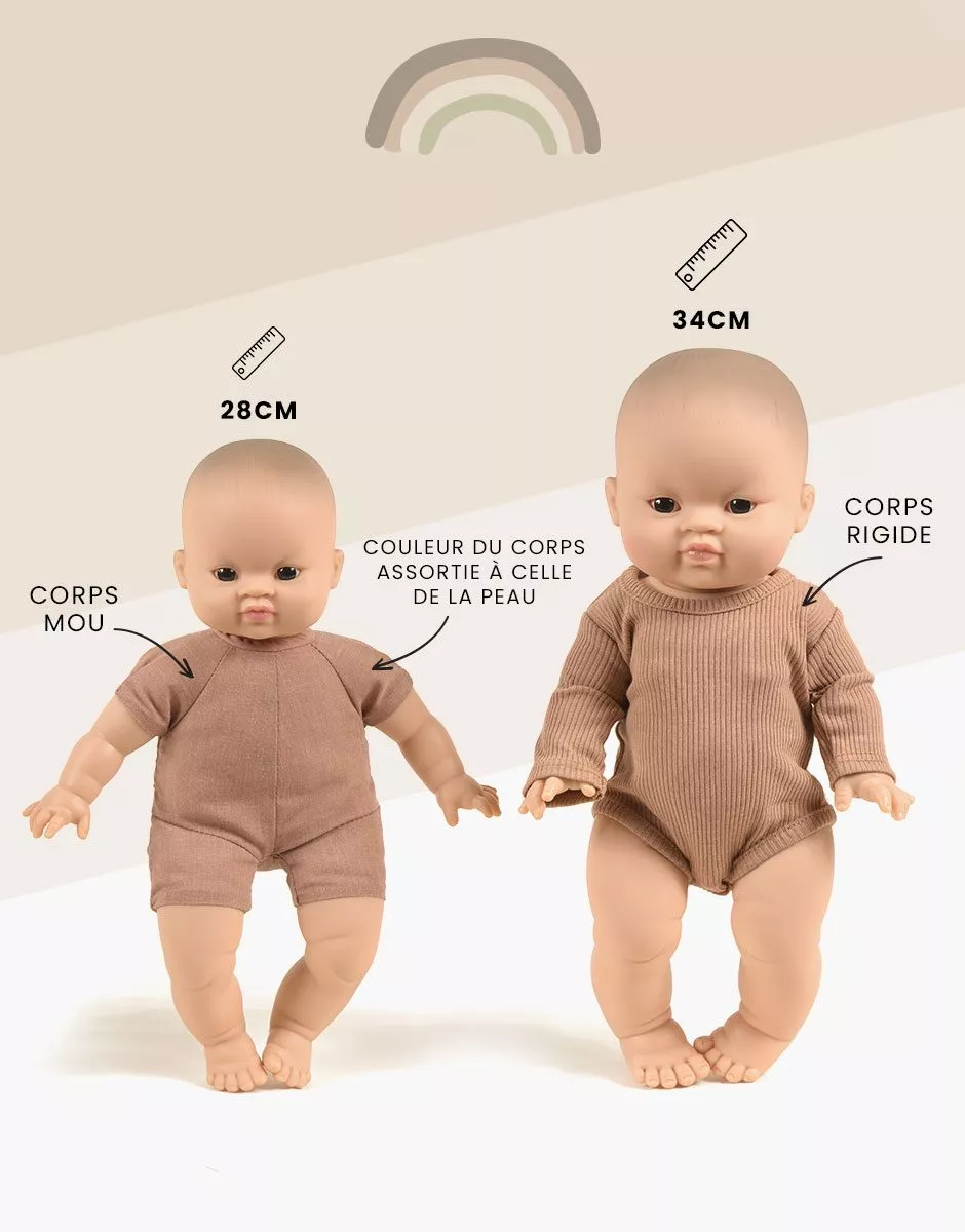 Poupée en vinyle à cheveux avec frange, parfumée à la vanille.