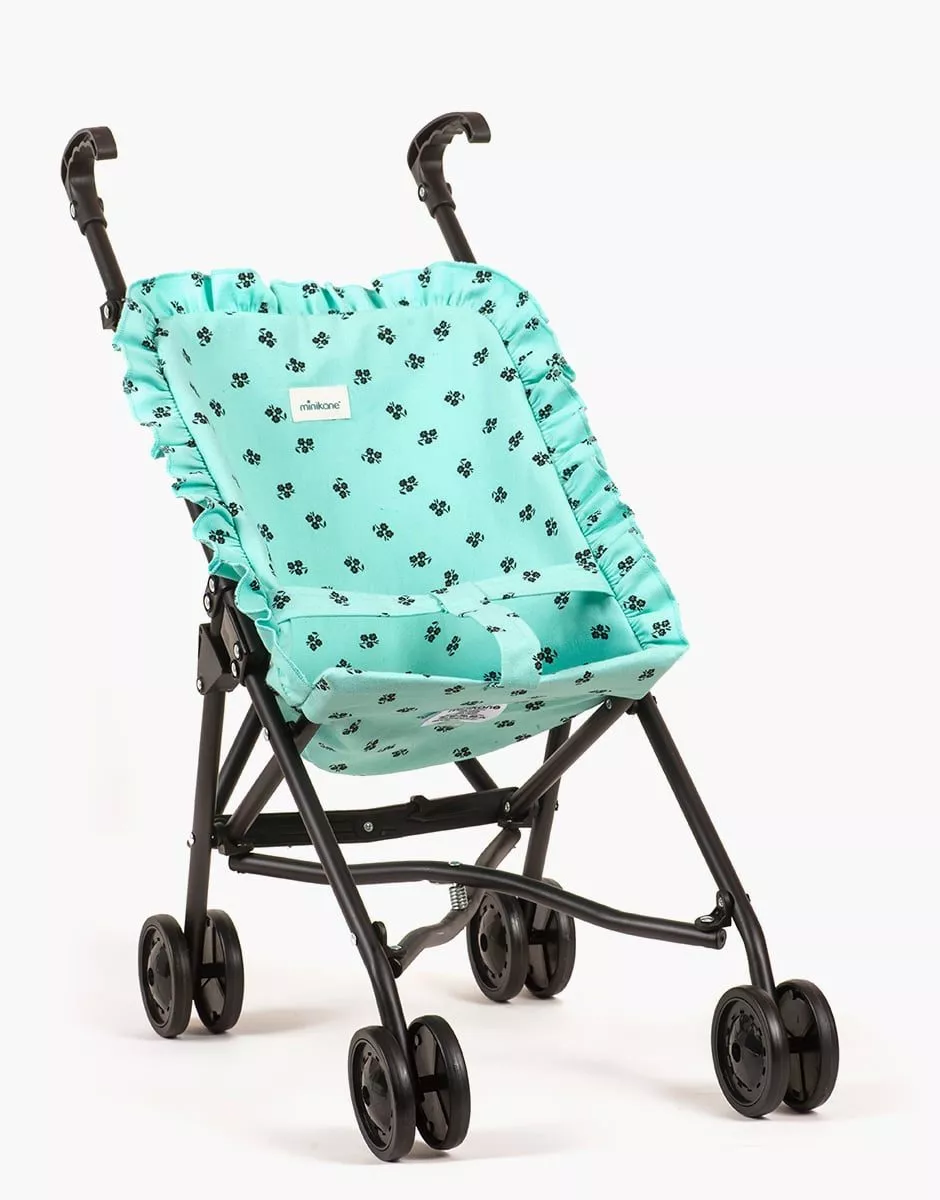 Poussette poupée à volants Capucine vert menthe sur châssis noir