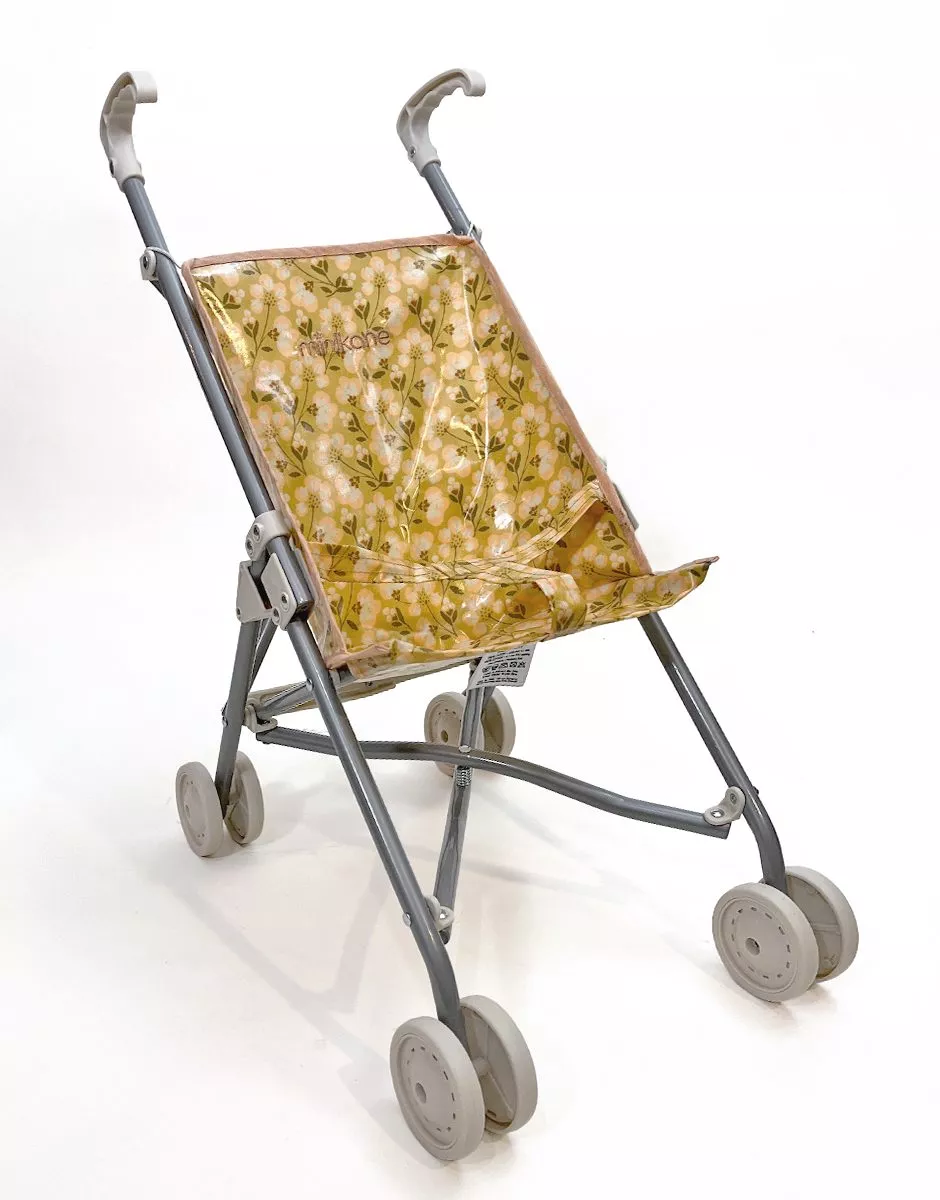 Poussette pliable pour poupée avec assise en coton enduit. Dimensions pliée : Longueur 63cm x Largeur 11cm x Hauteur 11cm. Dimensions dépliée : Longueur 42cm x Largeur 28cm x Hauteur 55cm. Châssis : crème classique. Défauts : Retour d’entrepôt, présence d’une légère couche de suie facilement nettoyable. Design, développement & confection de l’assise MADE IN FRANCE. Design, development & manufacturing of the seat MADE IN FRANCE.