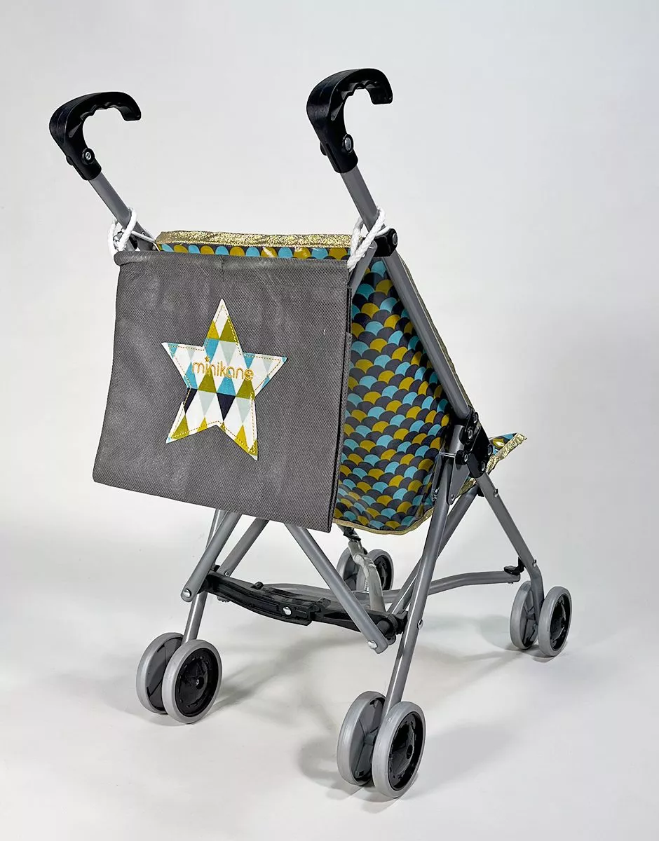 *Poussette poupée avec assise en coton enduit Écailles et son sac
