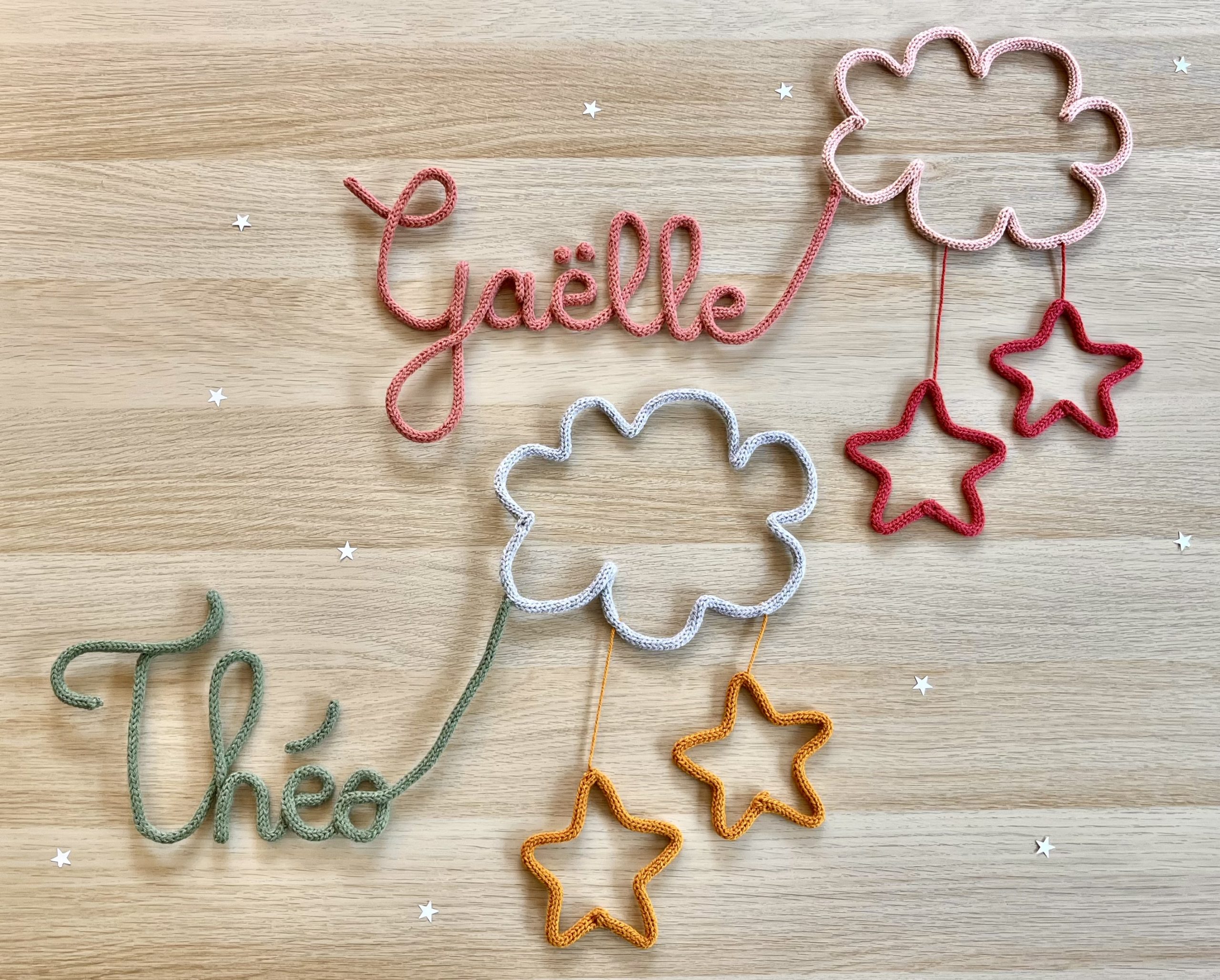 Prénom en laine et fil de fer, réalisé à la main dans mon atelier. Article fait main qui peut présenter quelques variantes et irrégularités au rendu.