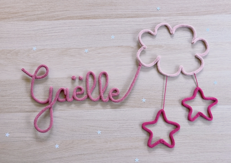 Le prénom en laine n’est pas un « jeu », mais un produit de décoration. Ne pas laisser un enfant seul en bas âge avec. Le tricotin est fragile et si l’on tire fort dessus celle ci peut s’arracher ou se déformer