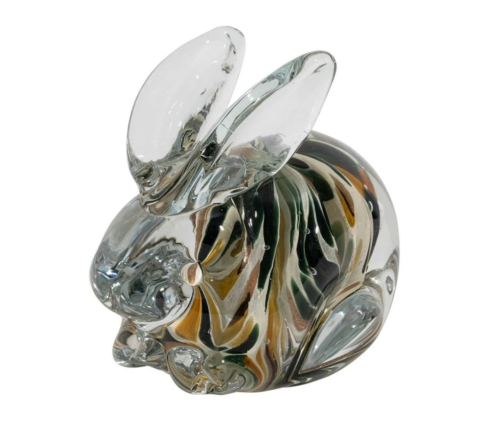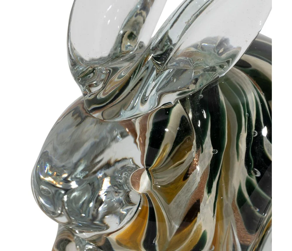 Presse-papier Lapin Garenne Ambre & Kaki en verre, Yliades