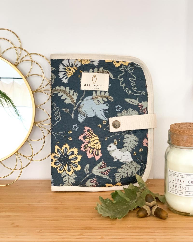 Ce protège carnet de santé est fabriqué en canevas de coton certifié Oeko-Tex et a une fermeture aimantée, pour une utilisation toute simple. Le protège carnet de santé est lavable en machine à froid et gardera sa qualité après les lavages.