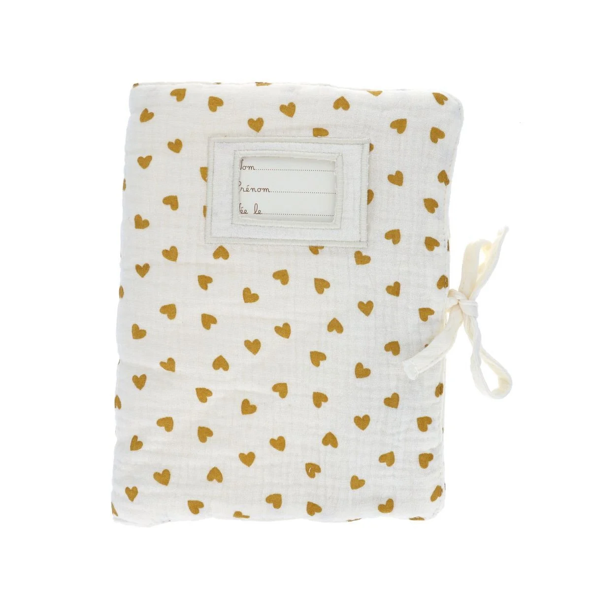 Protège Carnet de Santé Cœurs Moutarde , Le Petit Souk. Le tissu en coton gaufré tout doux de ce protège carnet de santé va vous faire craquer.