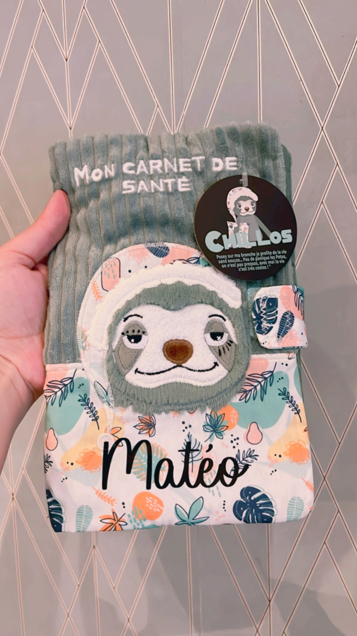 Protège carnet de santé Chillos le paresseux