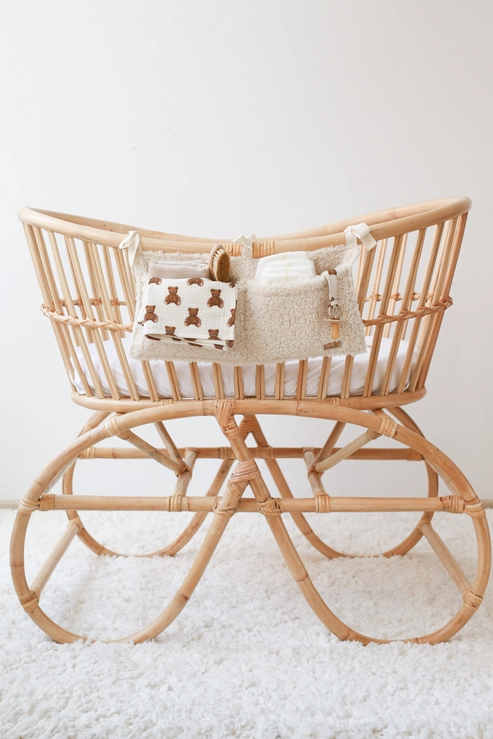 Ce Range Doudou est conçu pour s’adapter à divers environnements. Suspendez-le facilement sur un couffin, berceau, lit, patère ou même une table à langer. Grâce à ses deux poches spacieuses, vous pouvez garder à portée de main tous les objets essentiels pour le soin de bébé : couches, lingettes, doudous, crèmes, langes, etc.