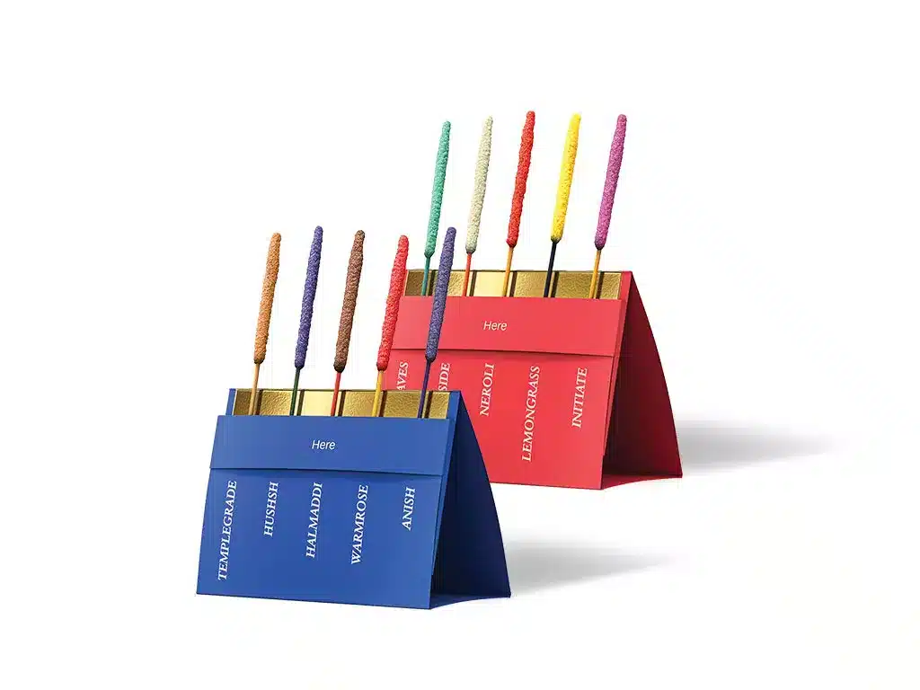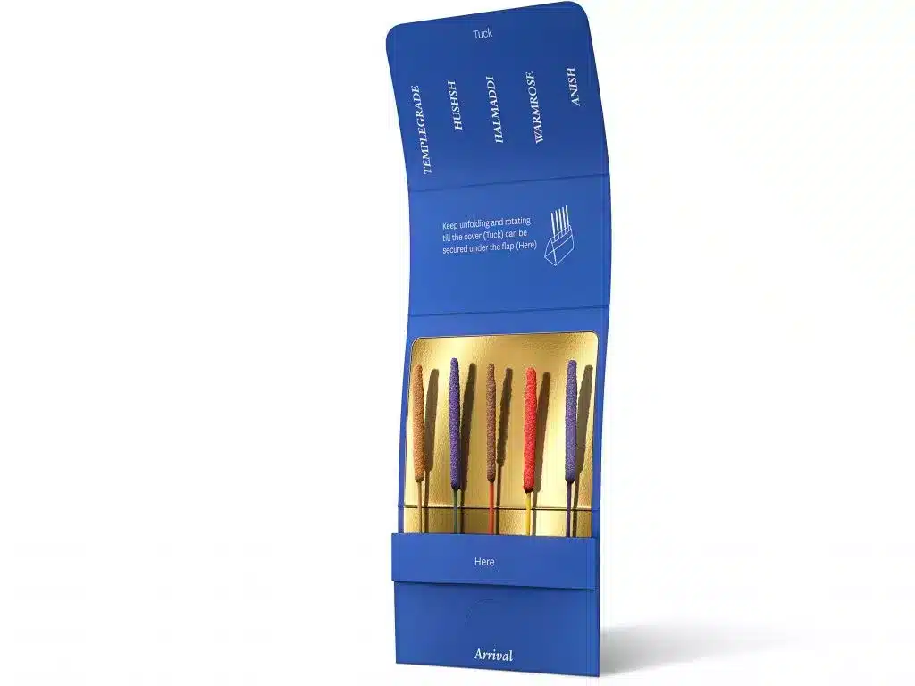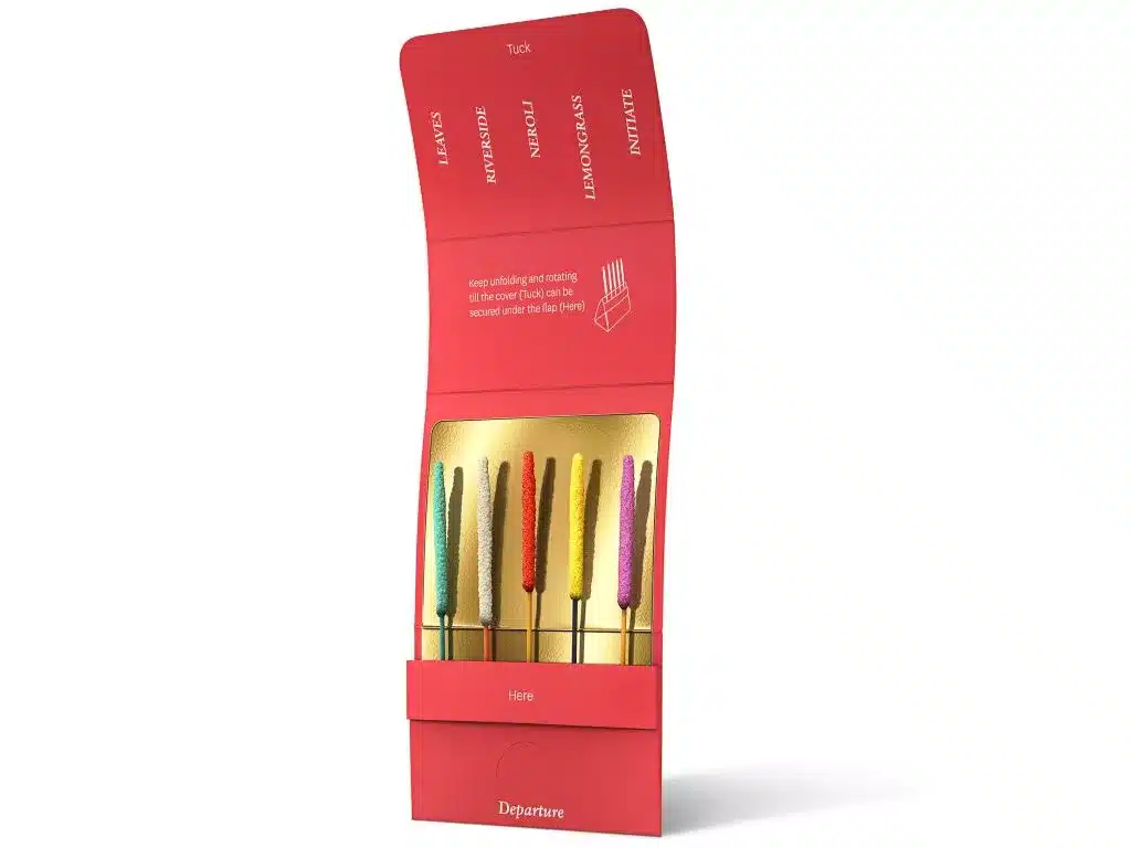 Cinq parfums se nomment « Departure » et ont un effet stimulant, apportant force et énergie. Les 5 autres parfums, appelés « Arrival », sont conçus pour favoriser le repos et aider à faire une pause. Ils permettent de respirer profondément dans le tourbillon de la vie quotidienne. Chaque bâton d’encens Relaxscent a une durée de combustion de 5 à 8 minutes. Il diffuse un parfum agréable avec une faible quantité de fumée, qui persiste pendant plusieurs heures.