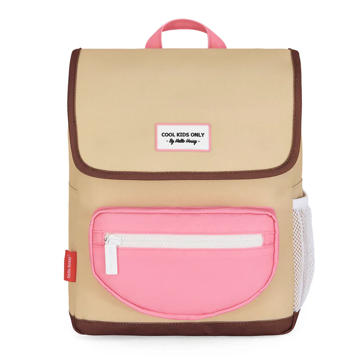 Tissu 100% polyester recyclé ♻️ 2 tailles (voir détails ci-dessous). Anses ajustables. Anses et dossier rembourrés. Attache clip poitrine ajustable (maintien du sac). Pochette intérieure de rangement. Pochette extérieure pour gourdes. Poche avant avec zipper Hello Hossy®. Zipper haute-qualité, taille large. Tissu déperlant. Cartable enfants pour école / Cartable coloré.