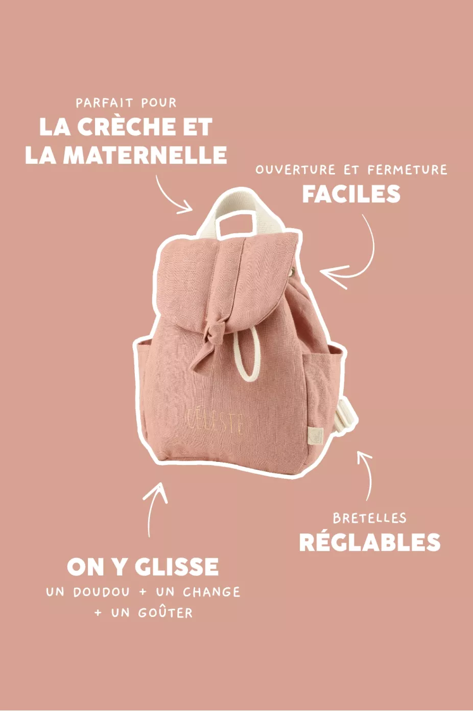 - Design et Praticité : Un look épuré et chic avec une fabrication robuste. Ce sac à dos est parfait pour les enfants en crèche et maternelle.