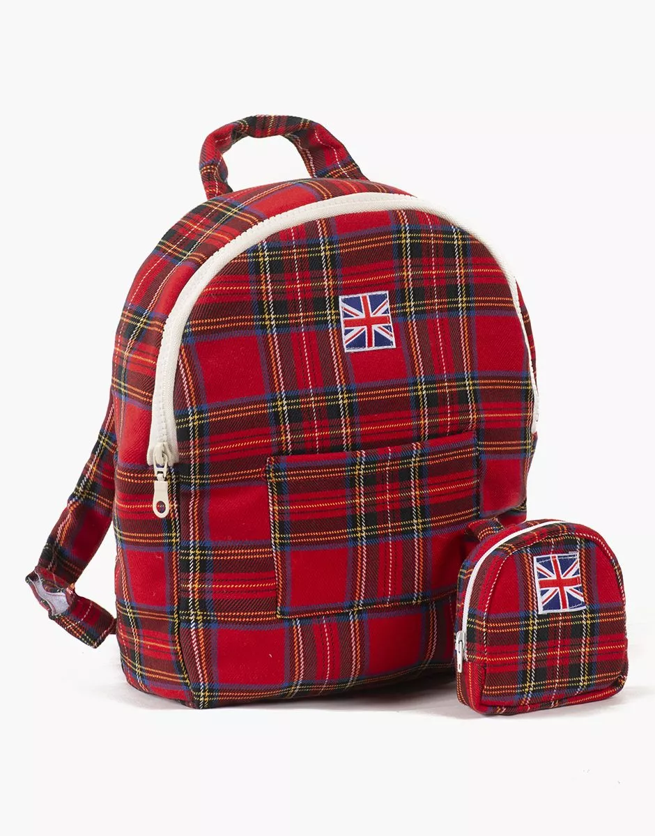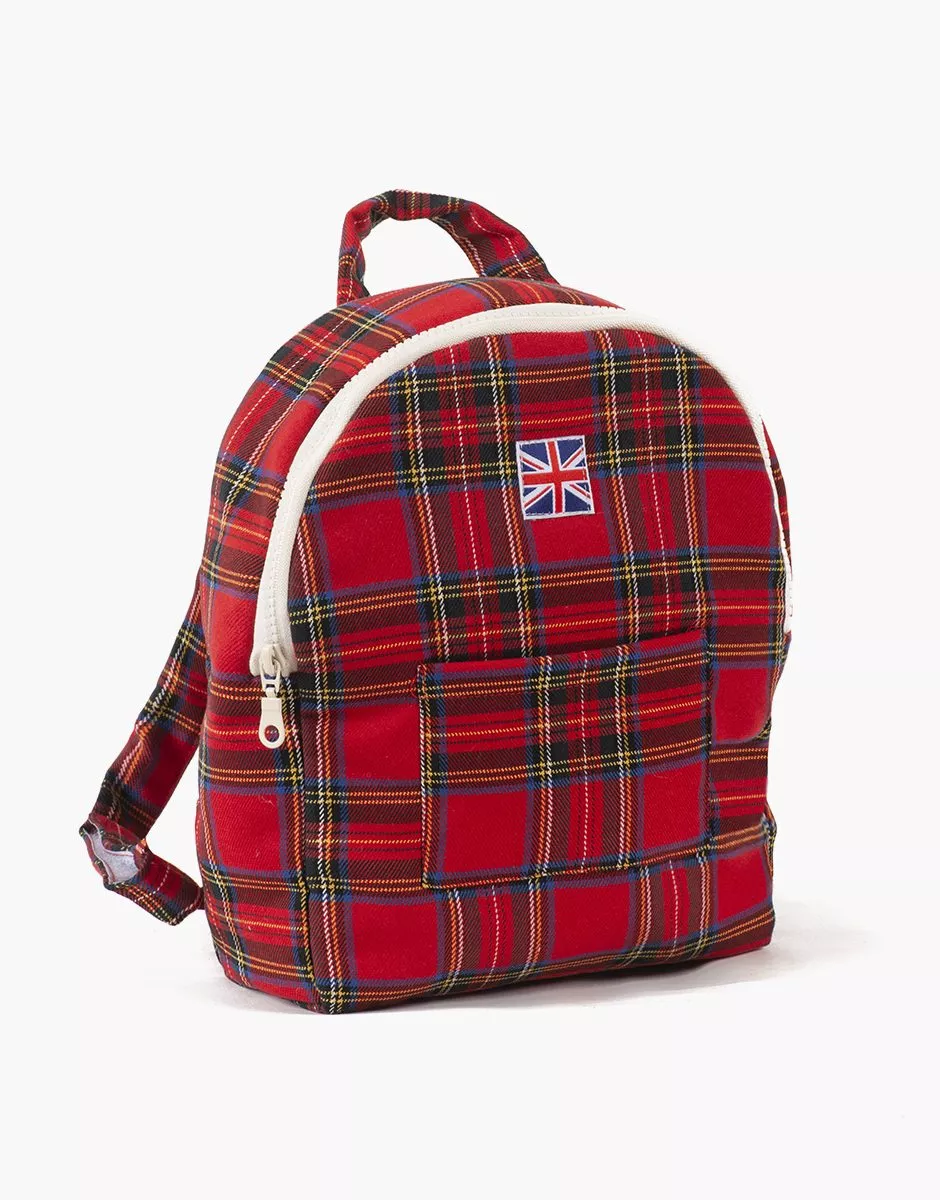 Collection capsule | Back to School in London Sac à dos Théo en tissu à carreaux Tartan avec fermeture éclaire et poche sur le devant pour enfants. Design, développement & confection MADE IN FRANCE. Design, development & tailoring made in France.