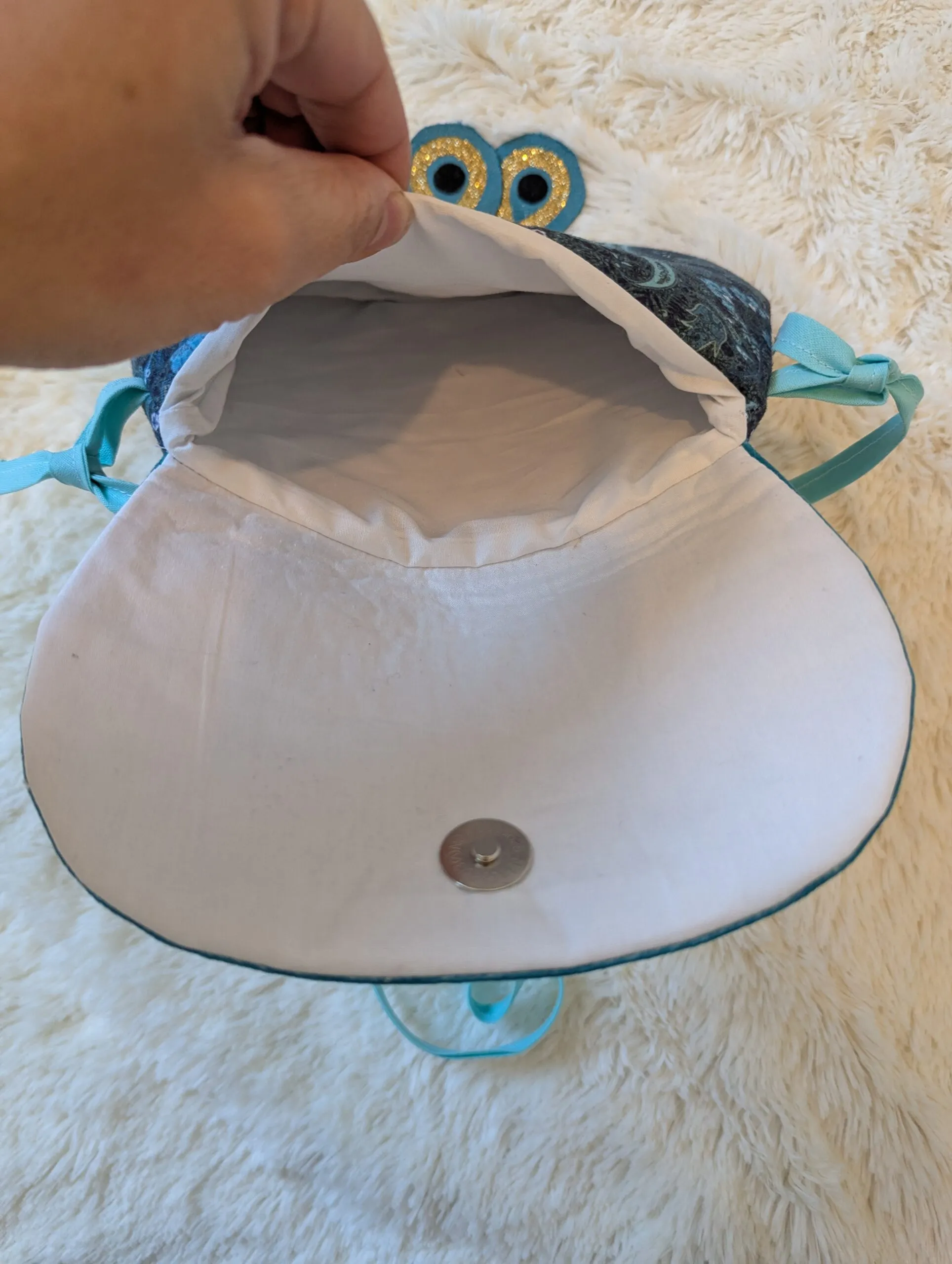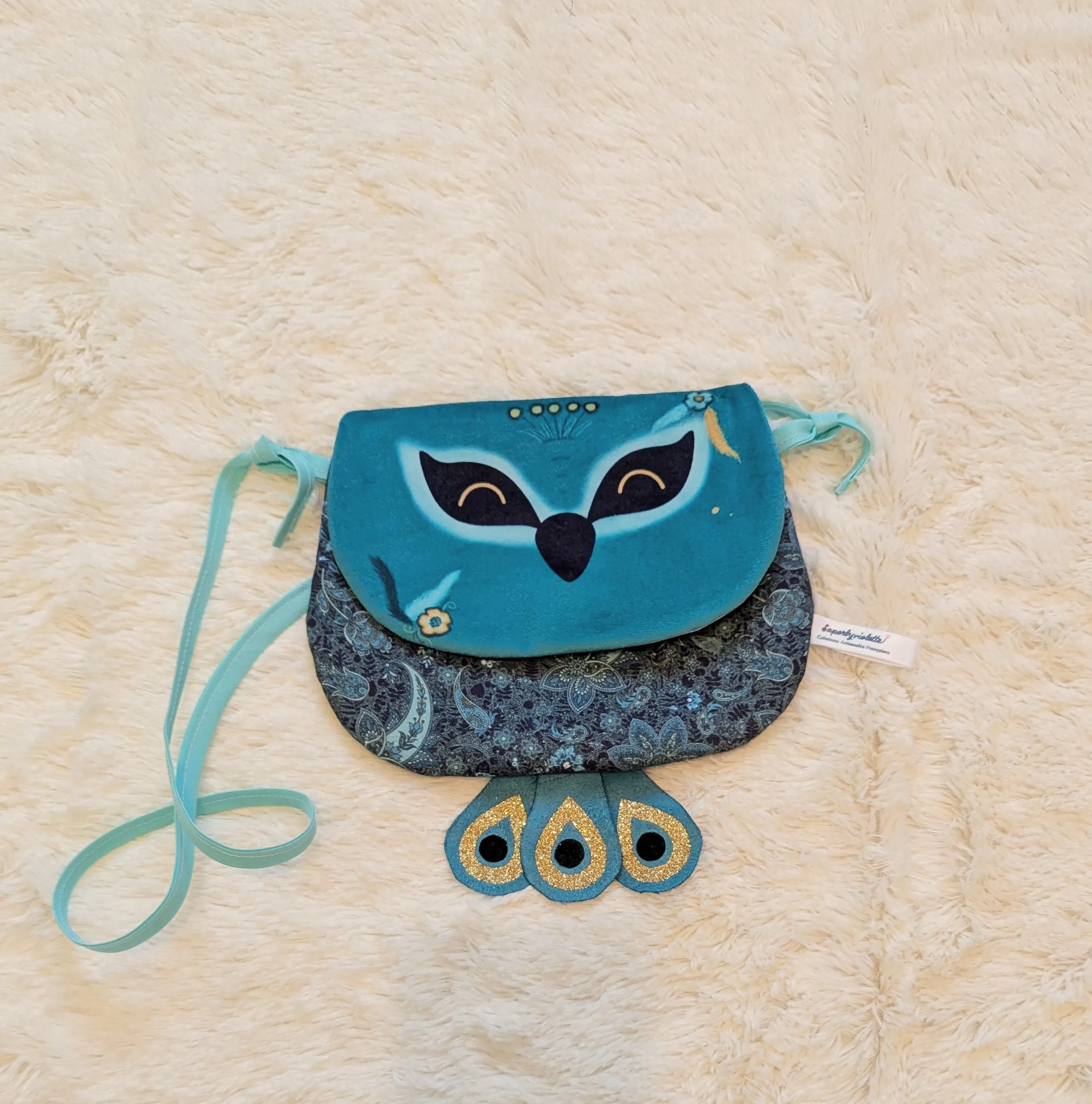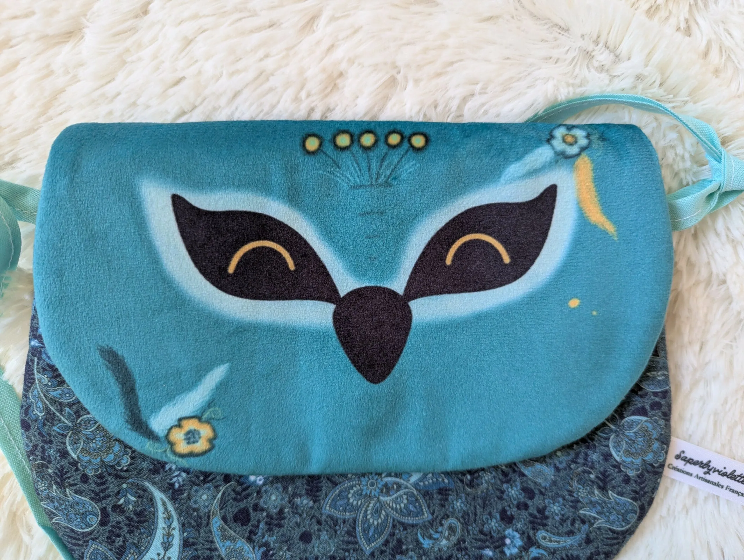 Sac à main fillette. Modèle Léon le paon et ses belles couleurs. Détails or et menthe thermocollés.