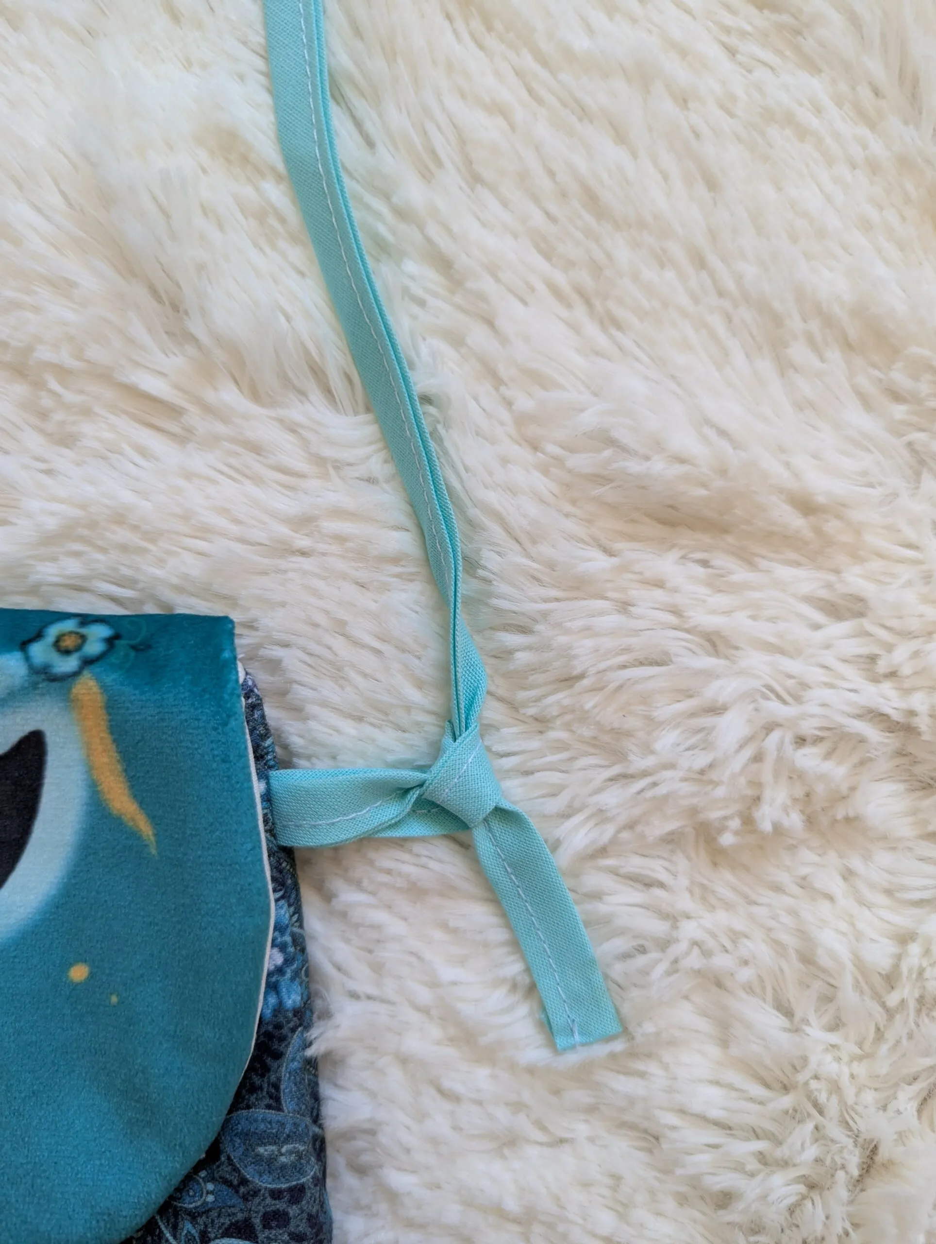 Rabat en suédine et coton (doublé molleton), fermeture par pression aimanté, bandoulière à nœud (vous pouvez ainsi jouer sur la longueur pour un porté épaule ou bandoulière).