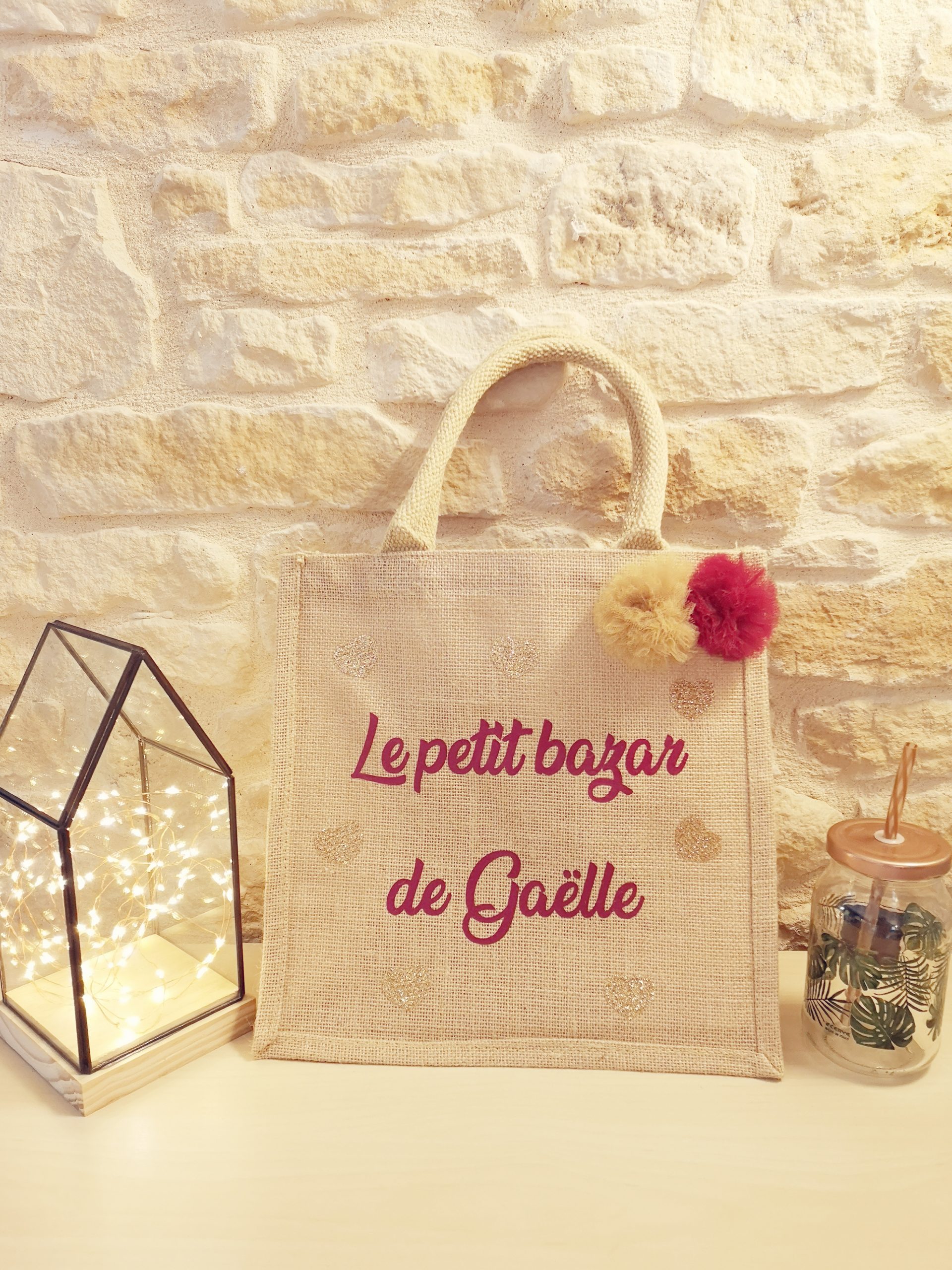 Cabas moyen modèle anses naturelles Ces cabas en toile de jute peuvent se porter à la main. A vous de choisir votre personnalisation : – Choix du texte et de sa couleur – Choix des décorations : étoiles ou pois argentés, dorés ou rosés – Choix de la couleur des pompons – Choix police texte […]