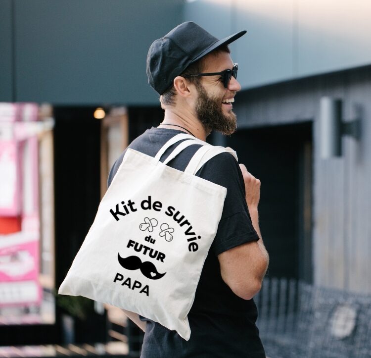 Vous êtes à la recherche d’une idée cadeau pour un futur papa ou pour annoncer votre grossesse au futur père, nous vous proposons ce sac kit de survie du futur papa. Il vous servira de base pour créer un kit qui vous ressemble et ainsi offrir un cadeau unique chargé en émotion.