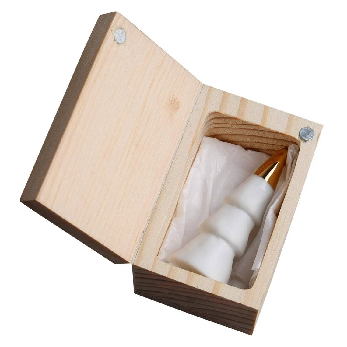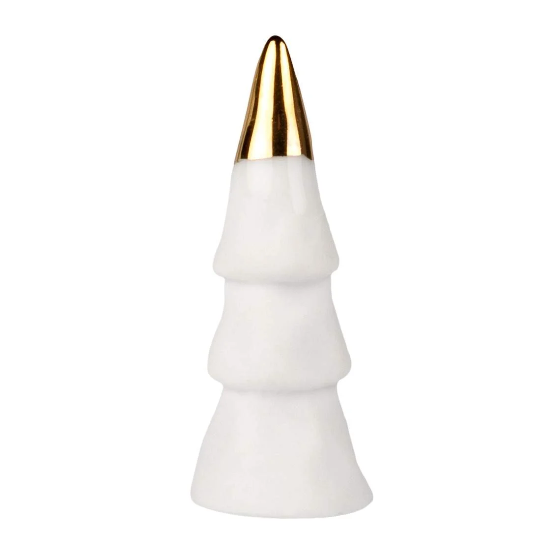 Petit Sapin Boite Bois, Räder. Un petit sapin en porcelaine blanche et dorée, peinte à la main. Idée cadeau fin d’année.