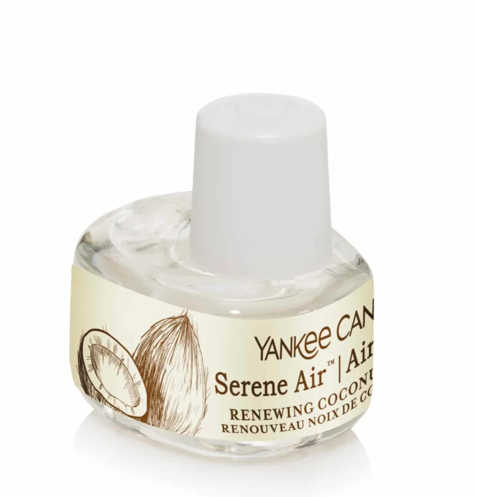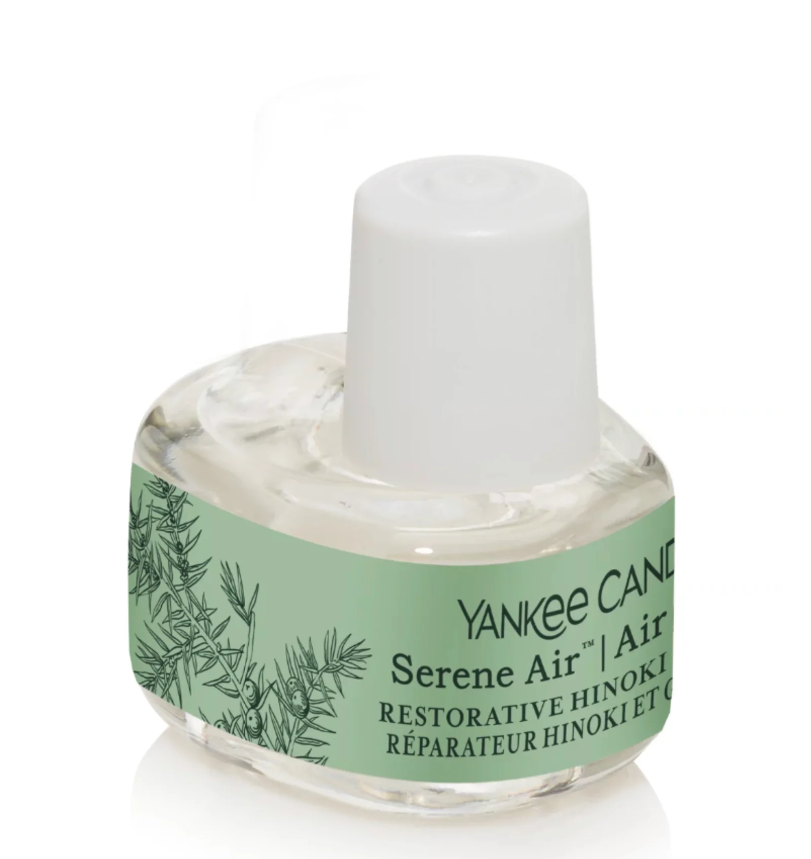 Recharge pour Diffuseur Serene, Yankee Candle . Procédé sans humidité . Senteurs : Hinoki Genévrier, réparateur . Coco Iris, régénérant . Lavande et Sel de Mer, apaisant . Rose Hibiscus, relaxant .