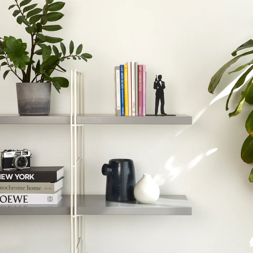 Tout d’abord, le serre-livres Secret Agent transforme votre étagère en un espace élégant et intrigant. Avec son agent secret bien habillé et sa femme fatale captivante, il évoque l’univers sophistiqué et palpitant des contes d’espionnage. Ainsi, il ajoute immédiatement du charme et de la personnalité à votre décoration intérieure.