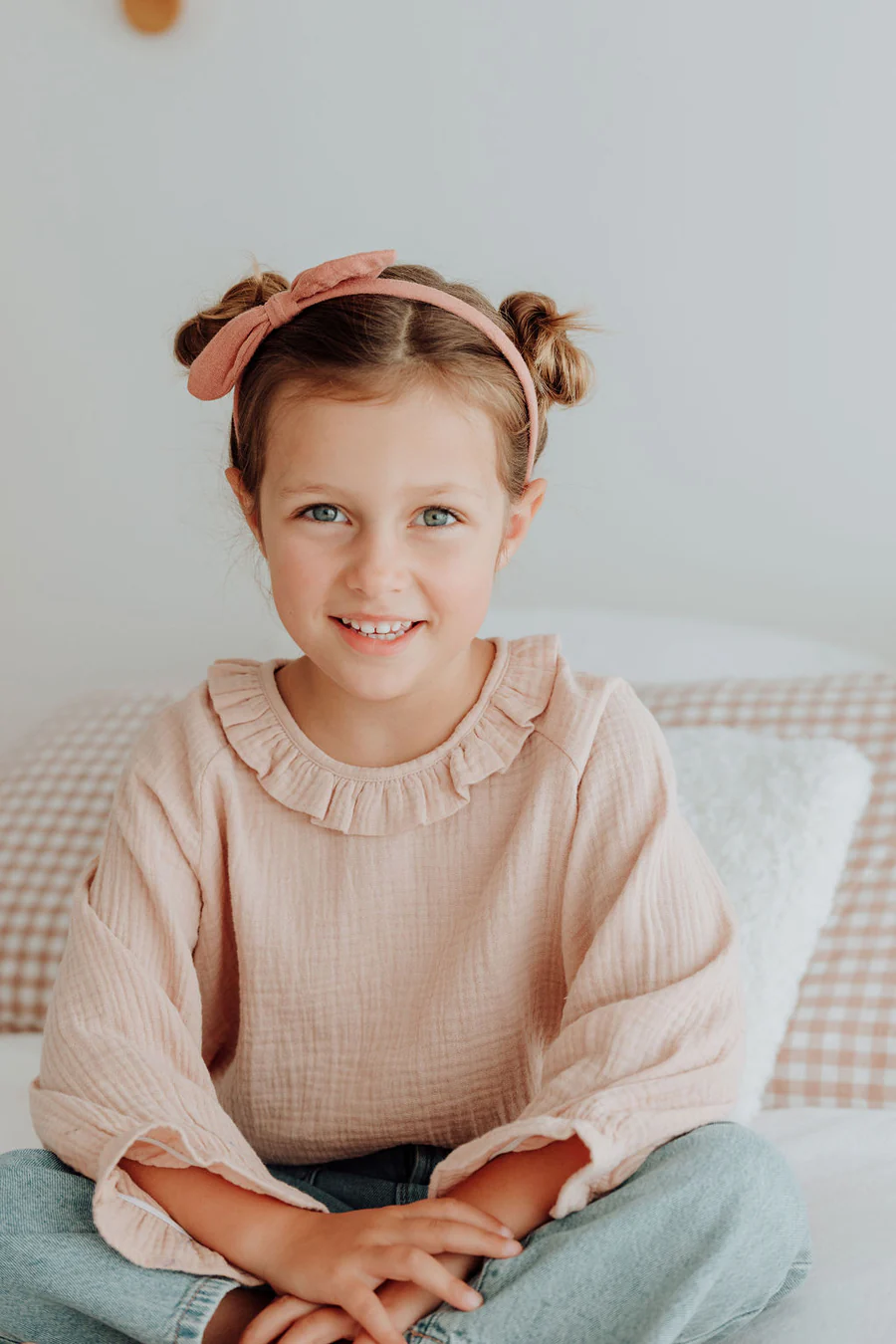 Ce serre-tĂȘte en double gaze ambre permettra de maintenir facilement et avec Ă©lĂ©gance les cheveux des petites. Il est rehaussĂ© dâun nĆud amovible. Accessoire tendance et pratique pour les tenues quotidiennes ou les occasions spĂ©ciales.