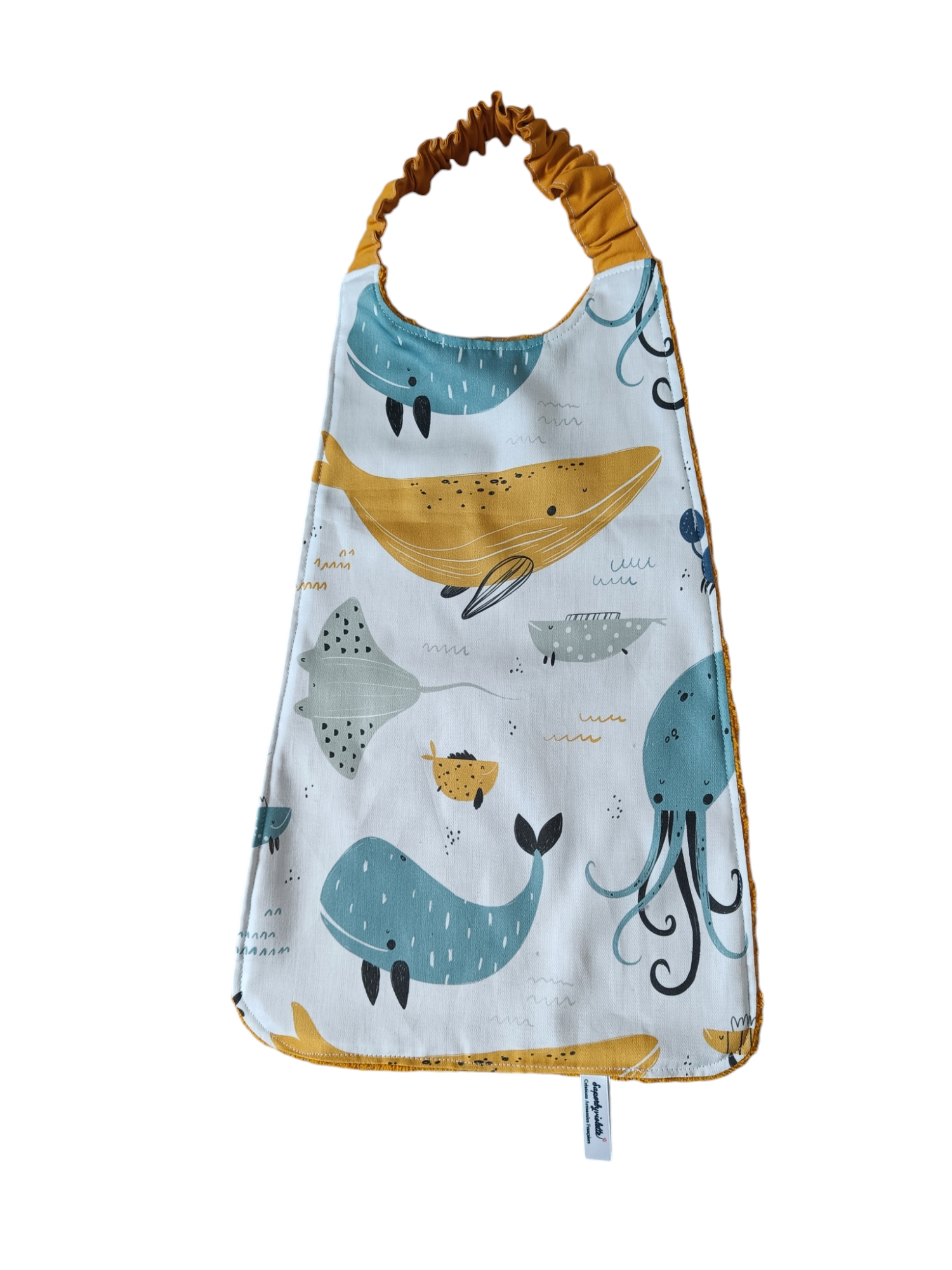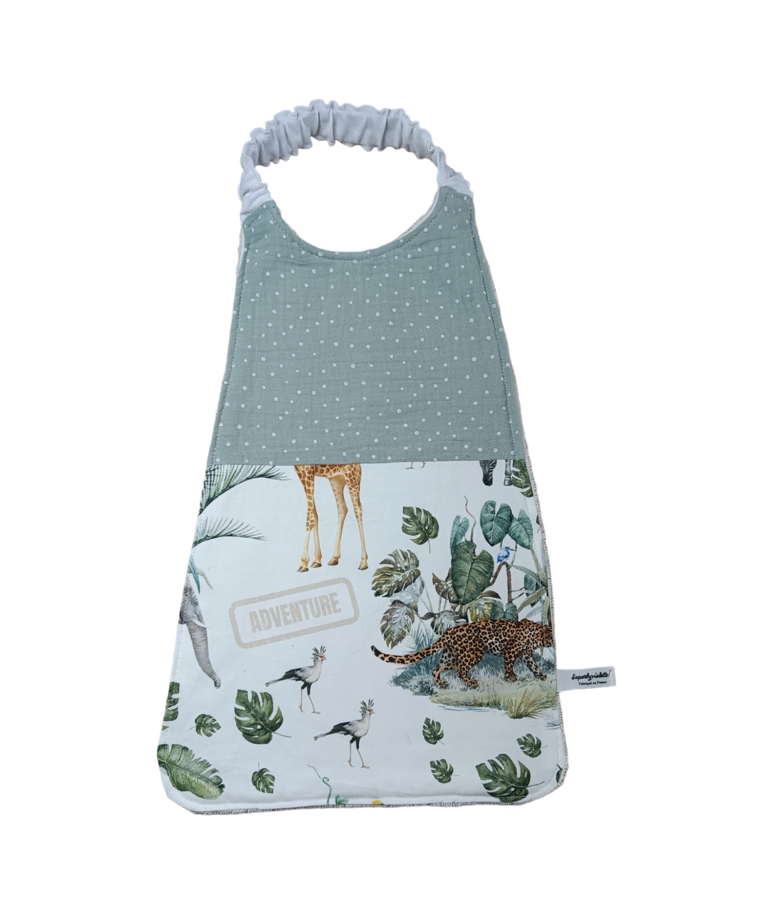 Cette grande serviette permet à votre enfant de découvrir l’autonomie, en effet elle est très facile à enfiler par la tête avec son cordon élastique. Grande longueur pour bien protéger votre enfant et éviter qu’il ne se salisse.