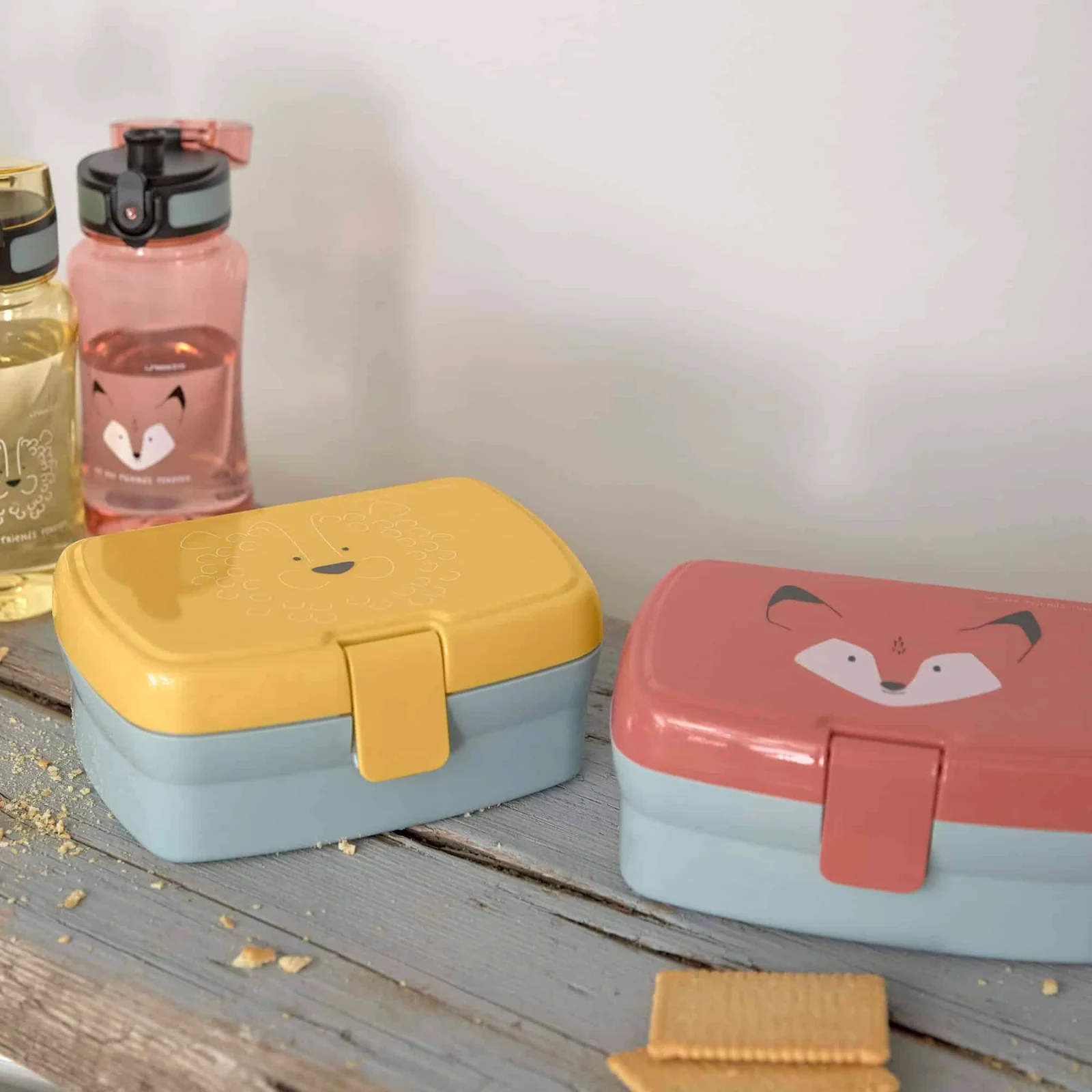 Set Boîte à Goûter et Gourde Lion, Lässig. Avec le set pour le gouter pour enfants en design About Friends Renard, les explorateurs sont parfaitement équipés pour leurs aventures. La boîte à goûter est munie d’une séparation pratique et la gourde étanche à une capacité de 460 ml.