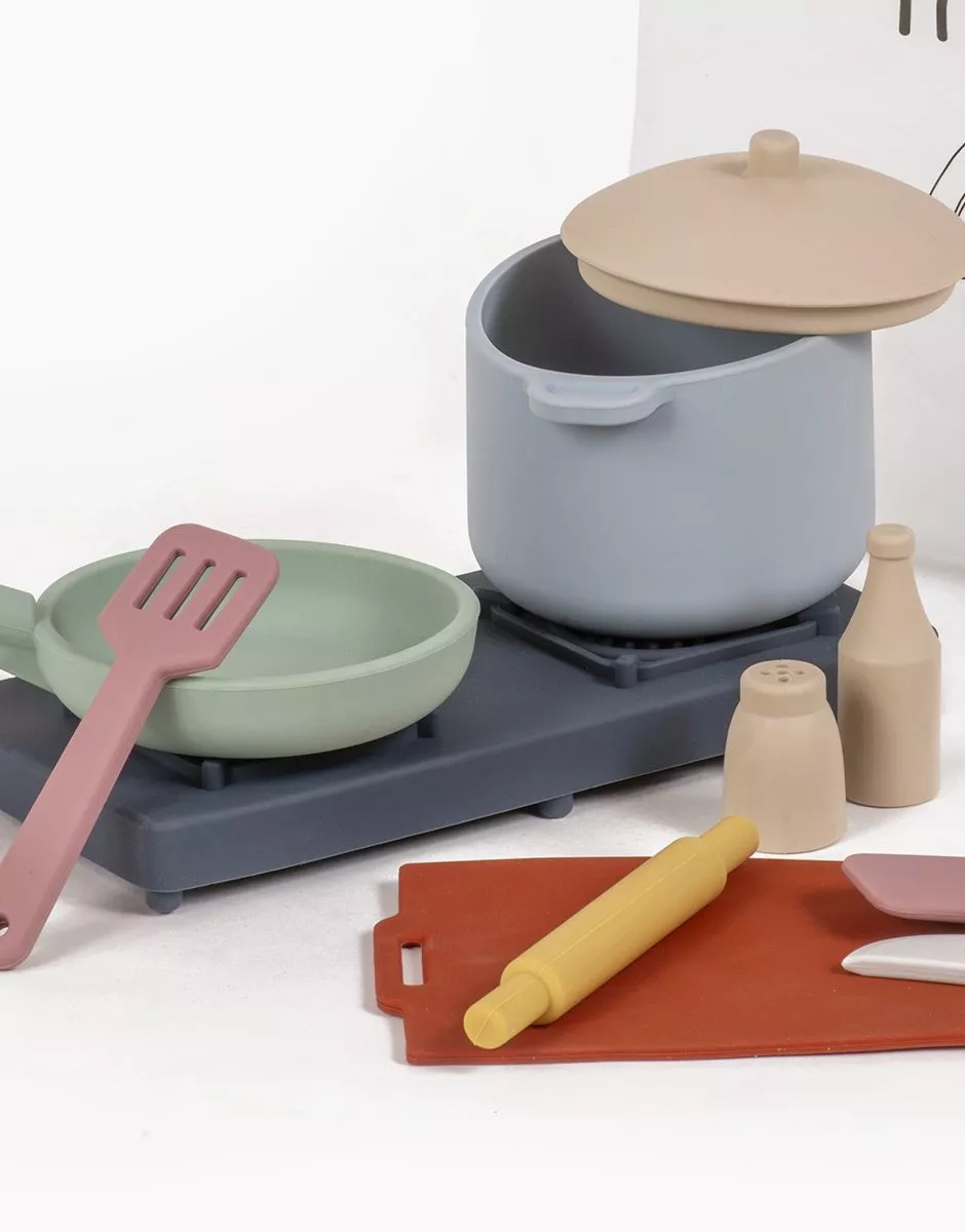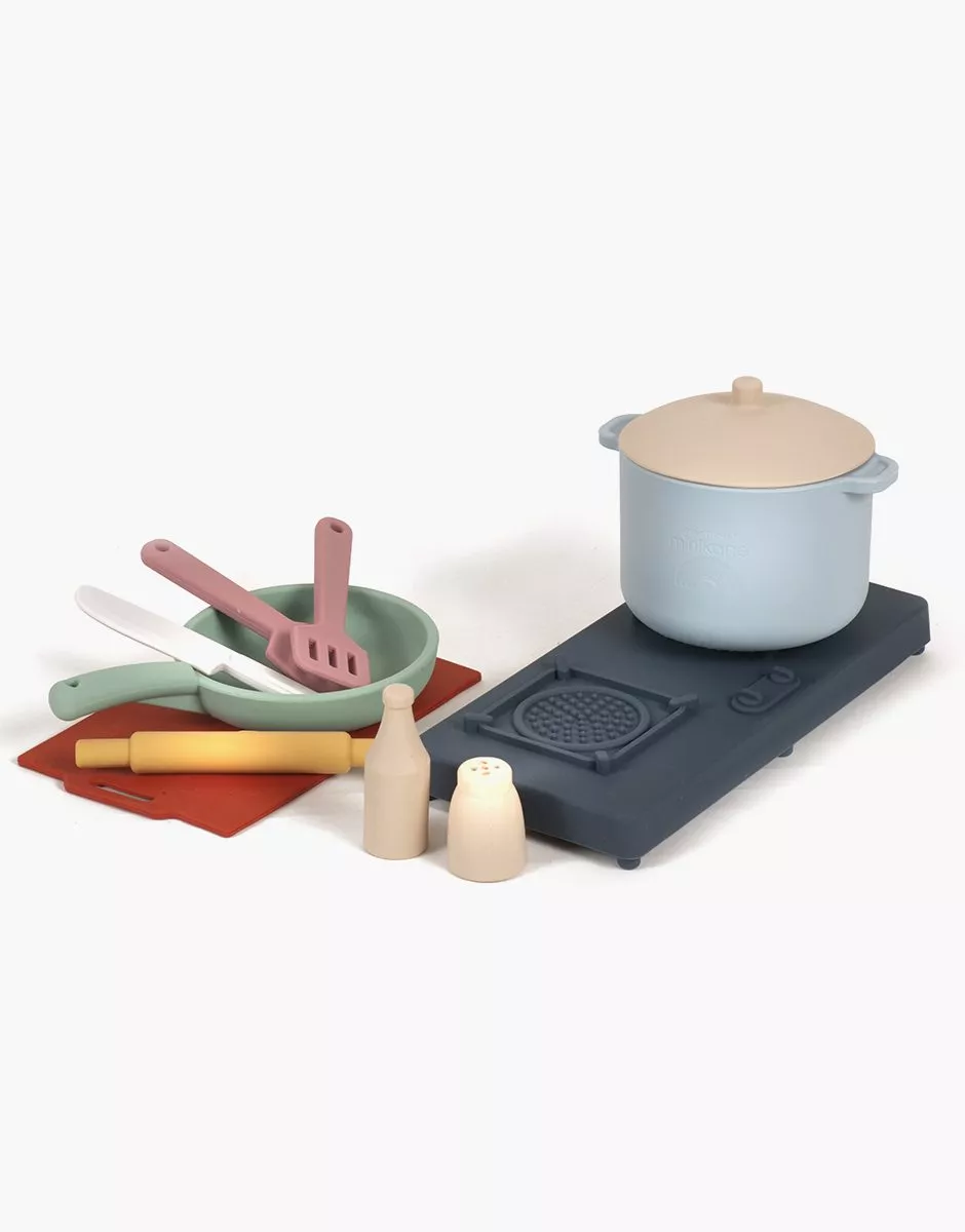 Ensemble dinette Minikane en silicone pour poupées, robuste et de haute qualité. Set de 12 pièces vendues dans son sachet zippé, réutilisables et logoté. Pratiques, solides et colorés, ils s’adapteront parfaitement à nos cuisinières Malang ! Convient aux enfants à partir de 36 mois. Conformes aux normes européennes et portent le label CE.