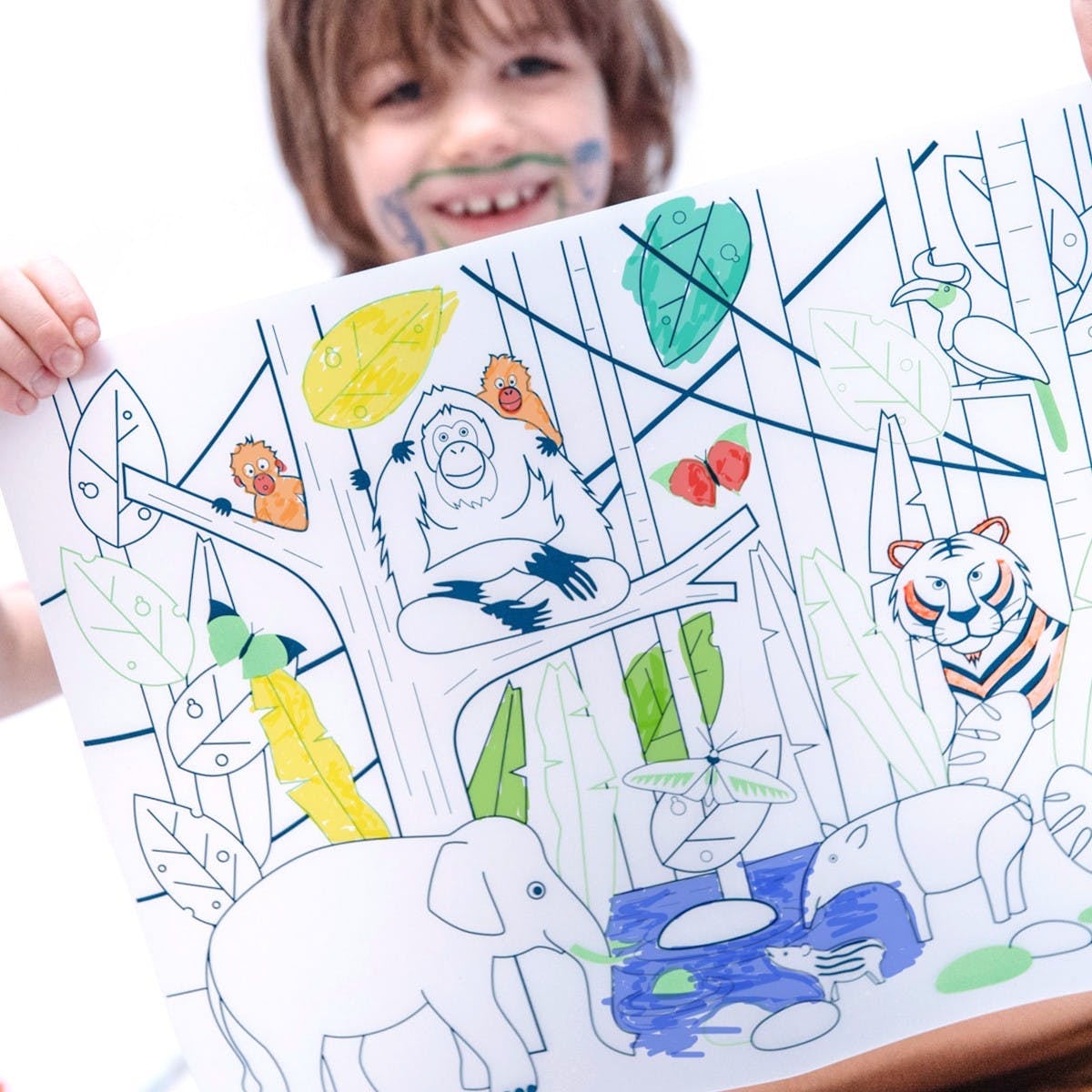1 set en silicone + 5 feutres + 1 bracelet FACILE A NETTOYER – REUTILISABLE – A PARTIR DE 3 ANS Bienvenue à bord de notre SuperPetit van pour une pause dans la jungle sauvage, bonnes découvertes !